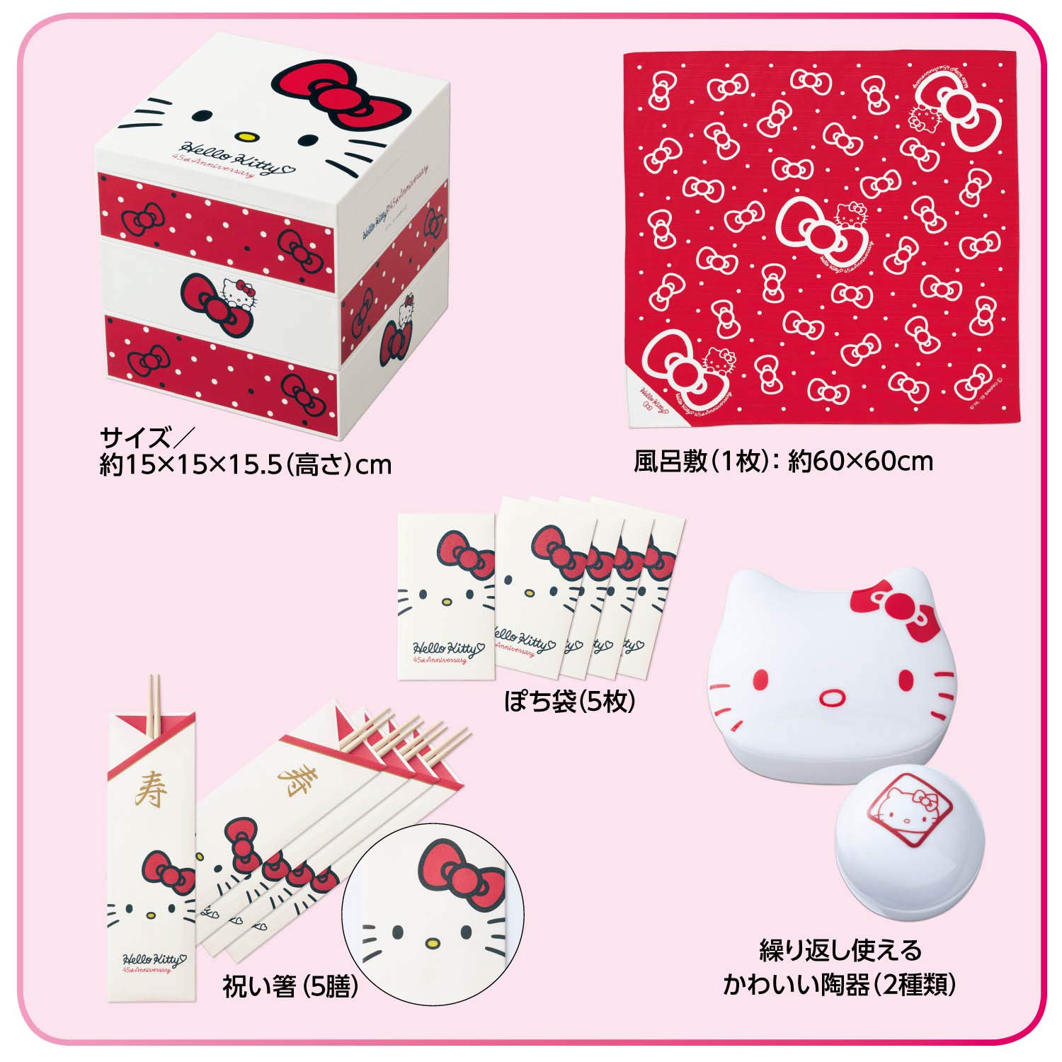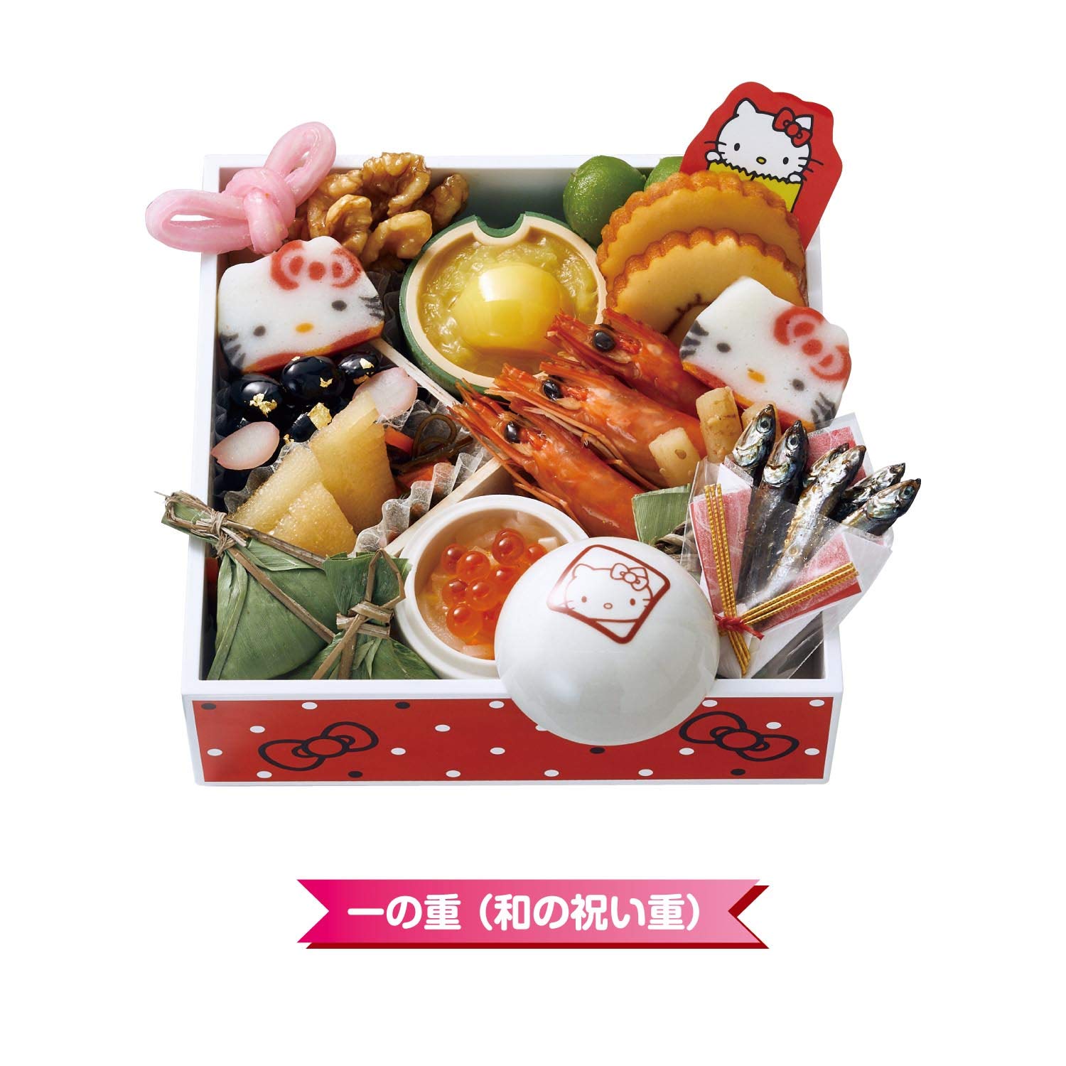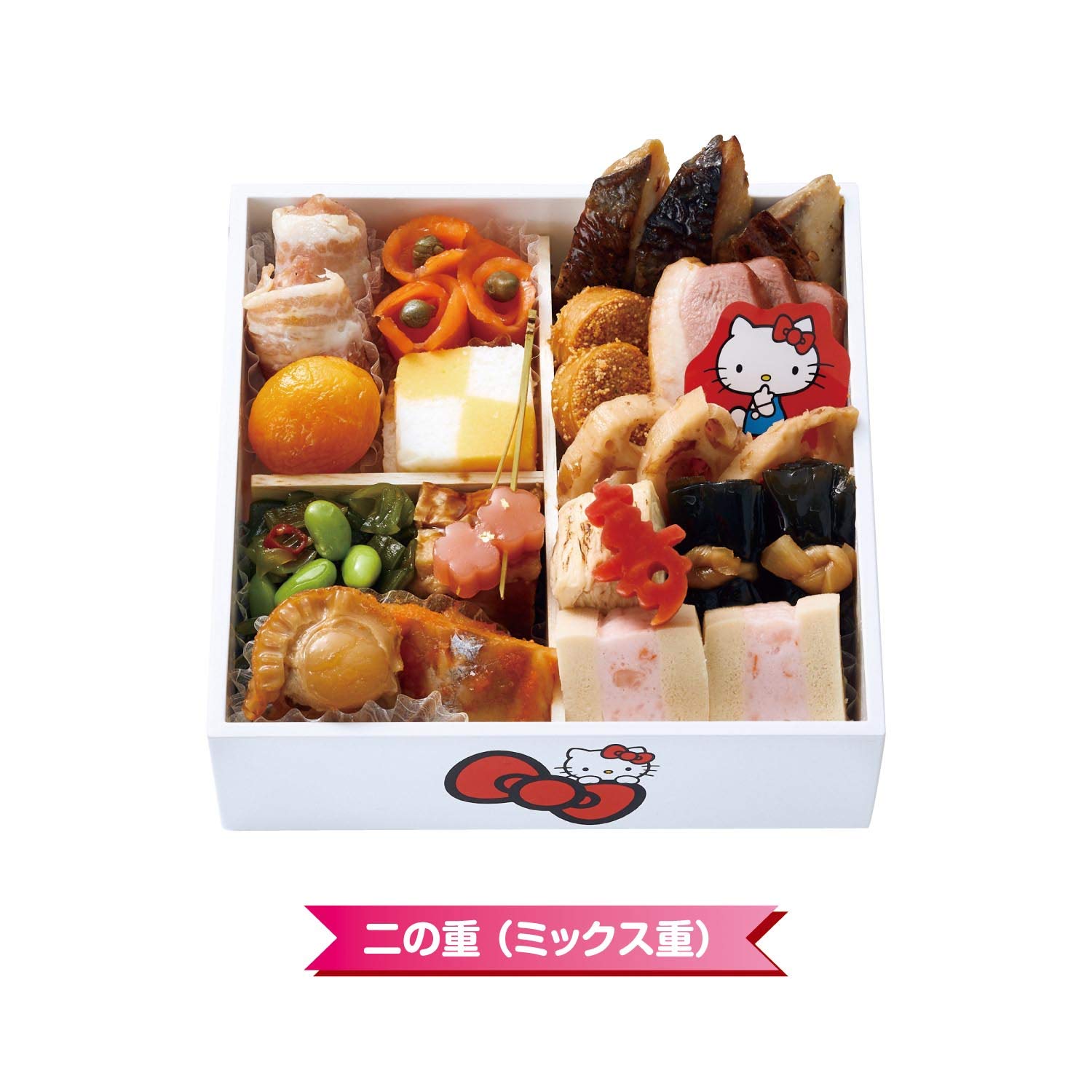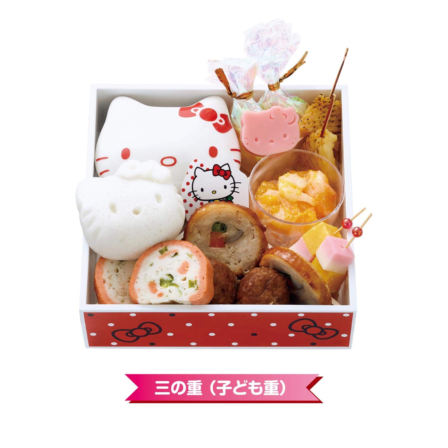 ▼除了小小兵款式以外,人氣歷久不衰的凱蒂貓也推出了3層的年菜組合「おせち・三段重<ハローキティ>」!