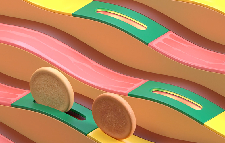 ▼廣告的 3D 動態設計師 Matthieu Braccini 表示,這個作品主要以「輕巧感知」為重點,希望傳達出食物的柔軟度、光滑度、紋理、質地等等,所有顏色和材料的整體氛圍,都有助於呈現食物美味的感覺!