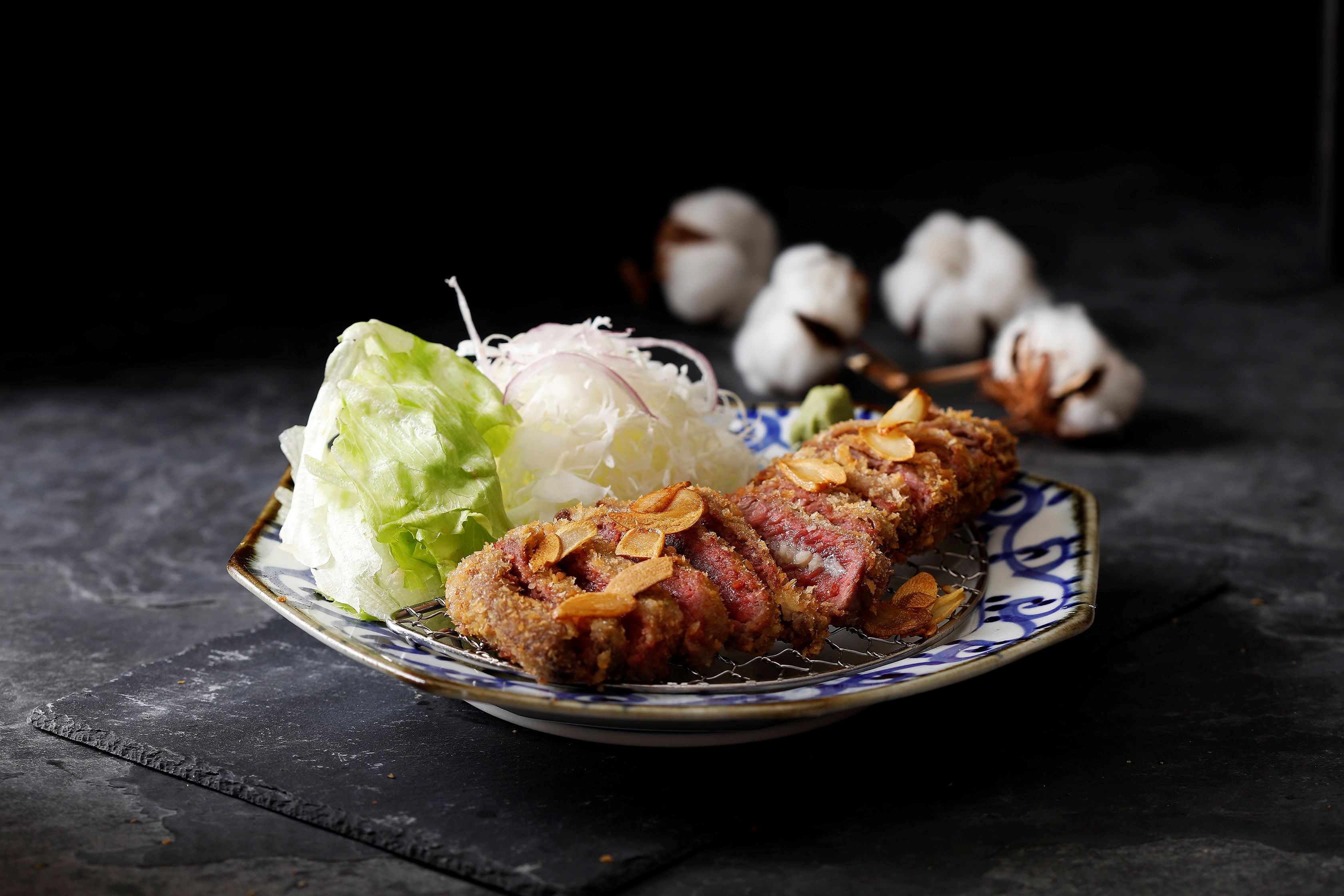 ▼京都勝牛推出冬季限定奢華系新品,「生蒜系列」經典牛排跟里肌豬排,肉中包裹著日本進口蒜醬,在油鍋中上色得金黃酥脆,軟嫩鮮甜的肉質與濃郁蒜醬完美結合,搭配焦香蒜片提味,撲鼻的香氣讓人一聞到就流口水~
