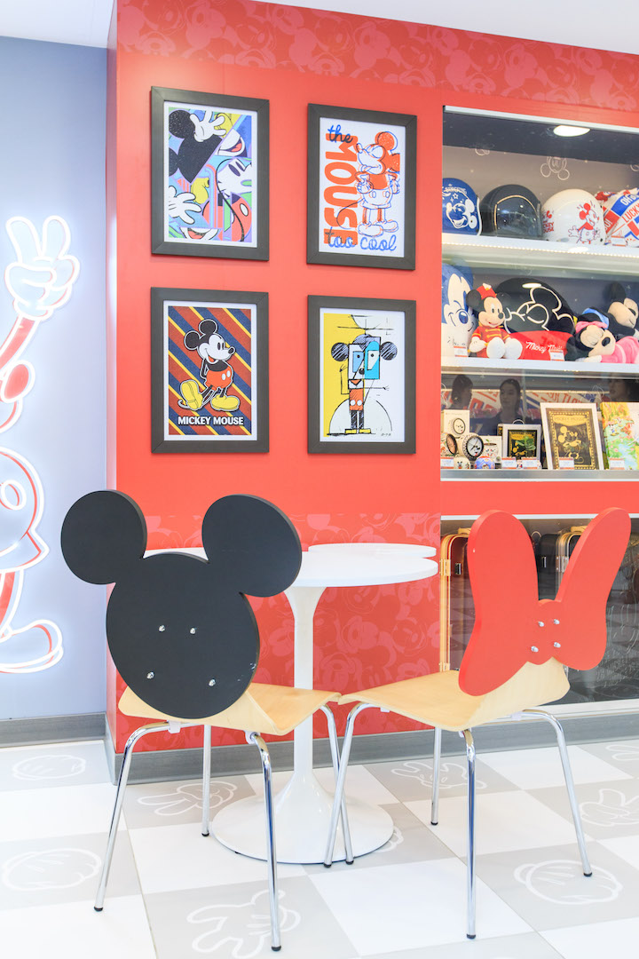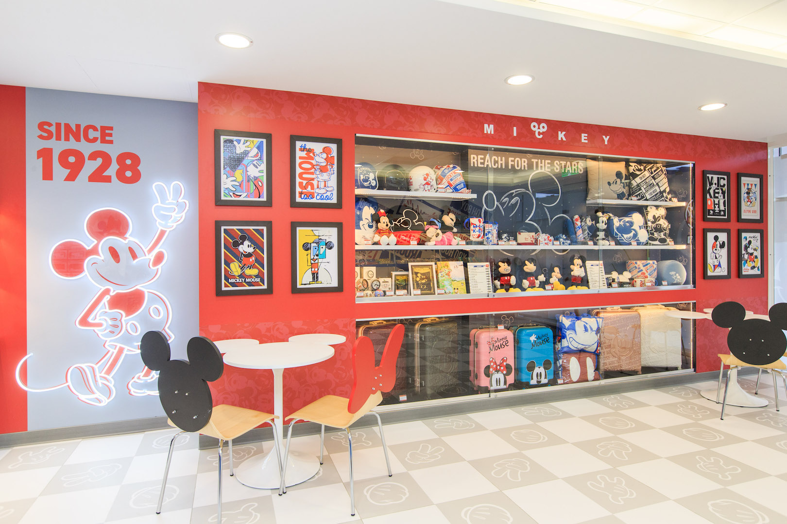 ▼整體設計以1928年最經典原始的米奇造型為主角,更特別掛上「米奇店招」與一般門市做區隔,門口柱子上還有與人等高的霓虹燈米奇,呈現美式懷舊復古氛圍。