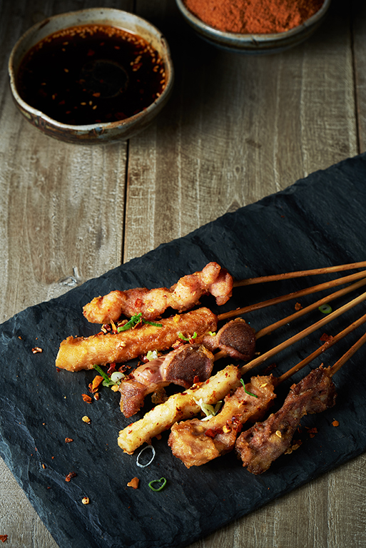 ▼新品「串作伙」系列,以「四川串串」為其研發核心,嚴選新鮮雞腿肉、豬肉、鮮嫩雞心、雞胗等食材,採以獨家特調辣醬加以醃製,起鍋後再沾特調醬汁、乾朝天椒籽、大紅袍花椒碎末、香蔥等辛香料,成就「獨特椒麻香」及「越嚼越有勁」的獨特口感。