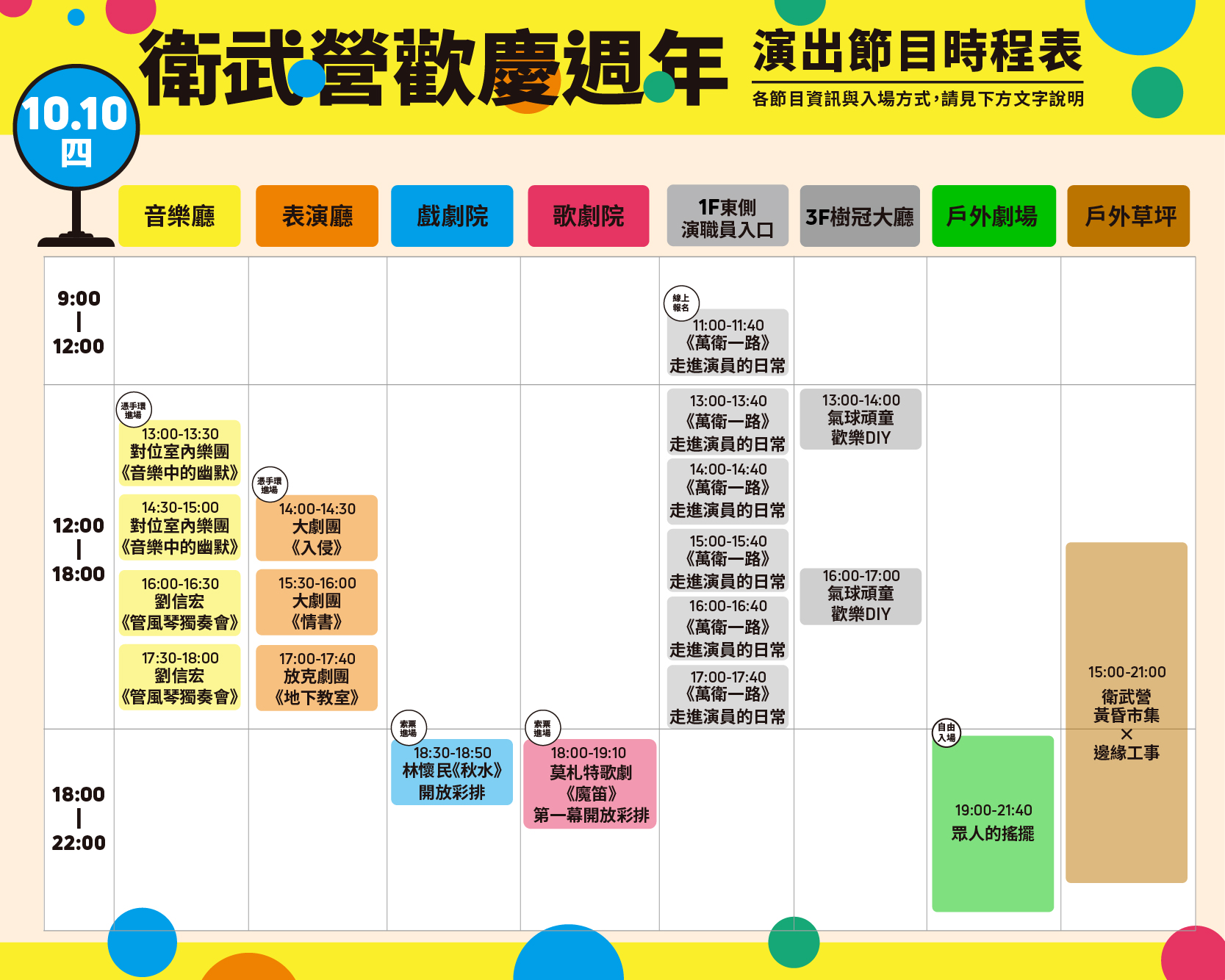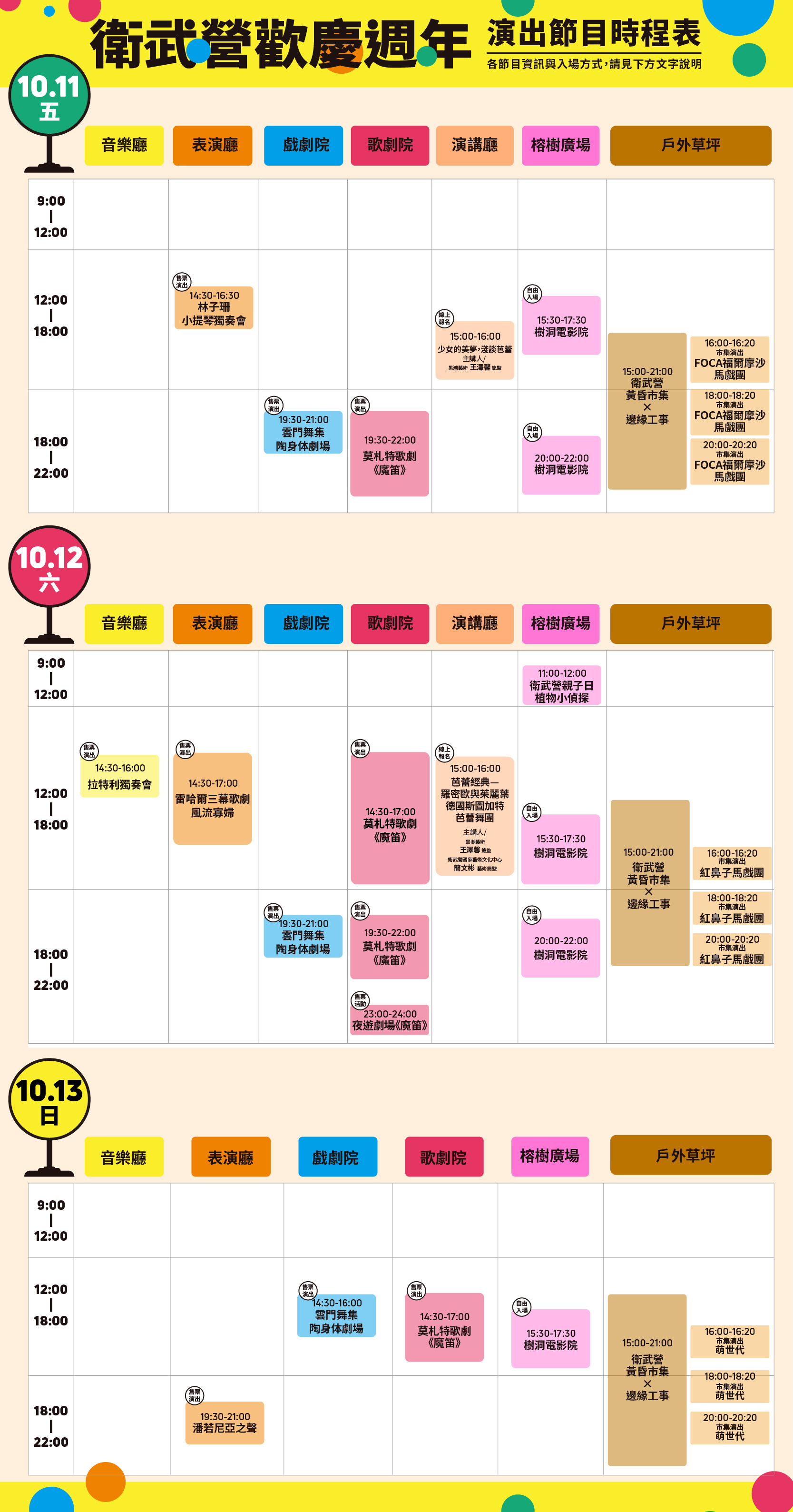 ▼另外附上衛武營歡慶週年慶的演出節目時刻表,想知道更多衛武營週年慶活動參與方式,可以到衛武營官方網站查詢~