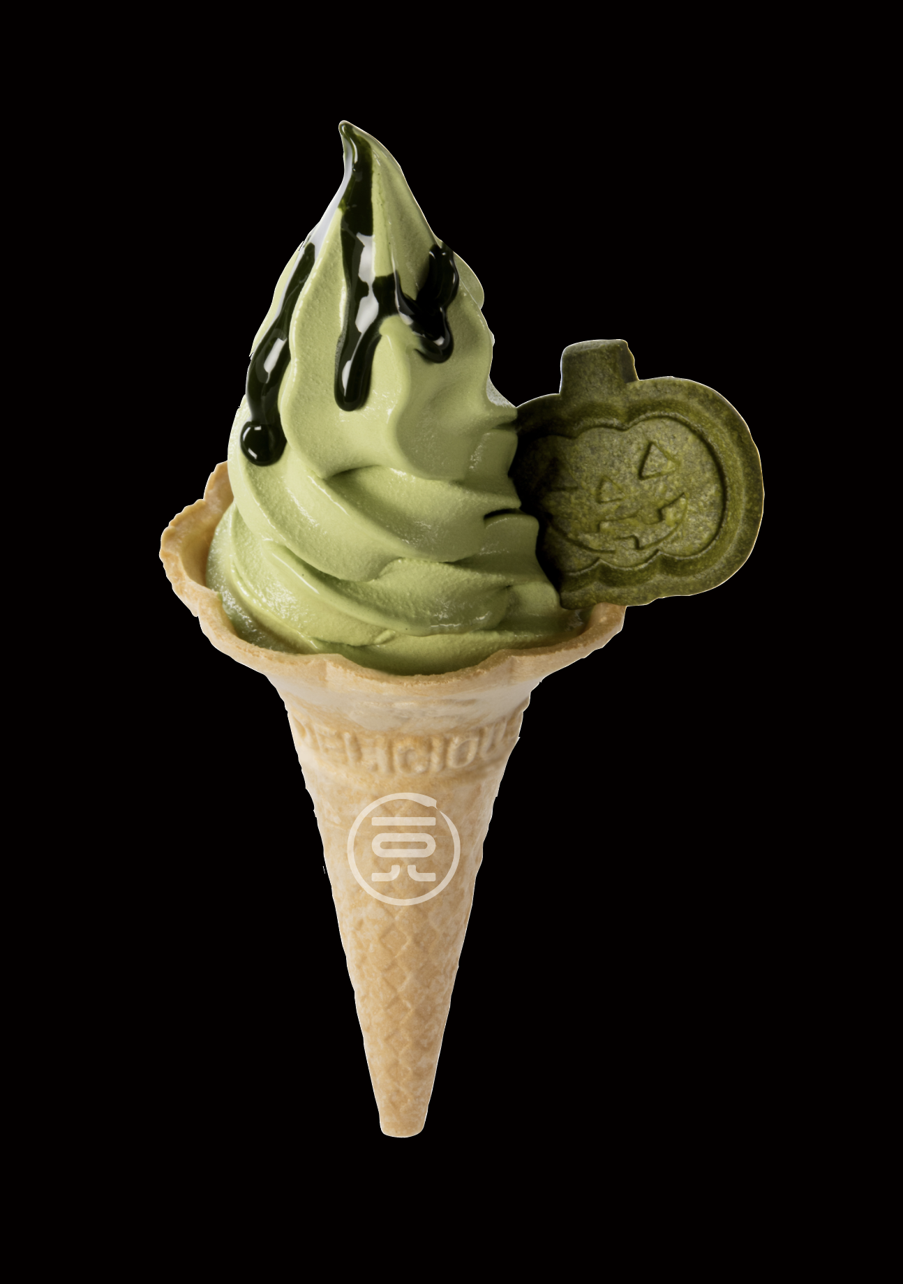 ▼萬聖節霜淇淋:用俏皮南瓜、蝙蝠、幽靈(隨機一款)造型餅乾沾著香濃抹茶霜淇淋,好吃又好拍擄獲抹茶控的心!