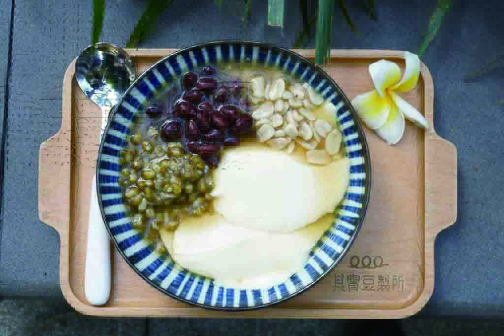 ▼「其實豆製所」在天母大葉高島屋,特別選用台灣本土金珠大豆來製作豆乳、豆花、豆乳霜淇淋、豆乳雪花冰等產品。金珠大豆是2014年由嘉義大學劉啟東教授採種純化的品種,有著濃郁的奶香味道,以及高於一般黃豆的大豆異黃酮含量。