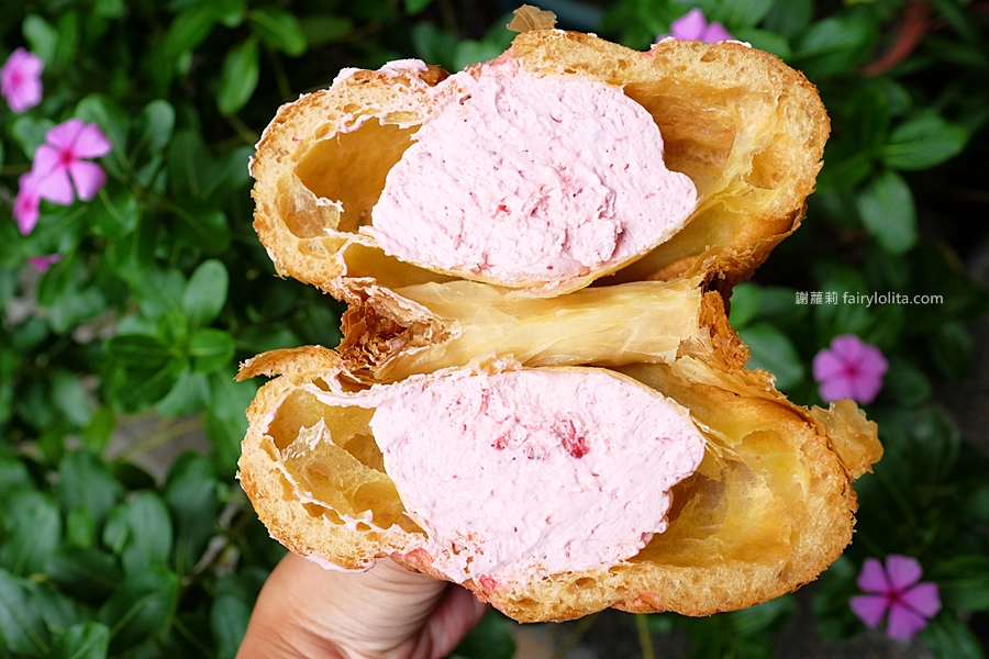 這顆泡芙的尺寸實在有夠扯啦!而且起酥外皮也很特別,感覺一定很好吃。泡芙控該行動一波買起來了吧~