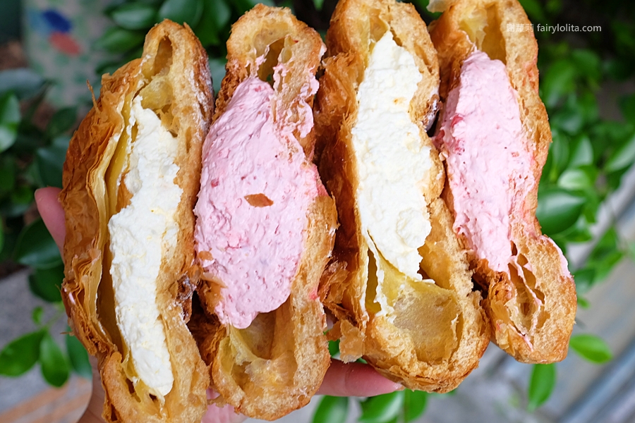 ▼剝開來看,裡面的內餡也是比想像中還飽滿,雖然不是完全塞好塞滿,但泡芙跟內餡的比例恰到好處。