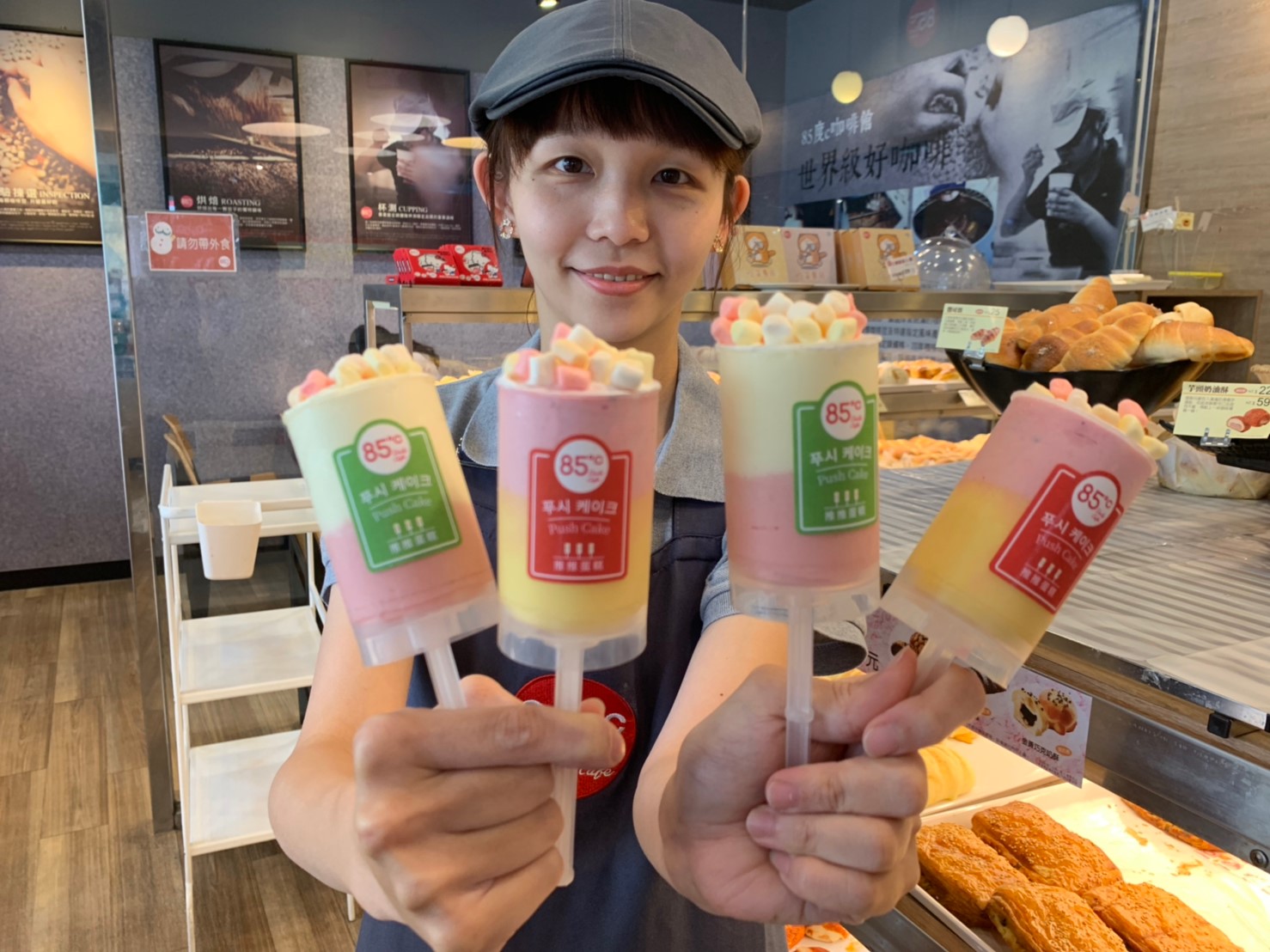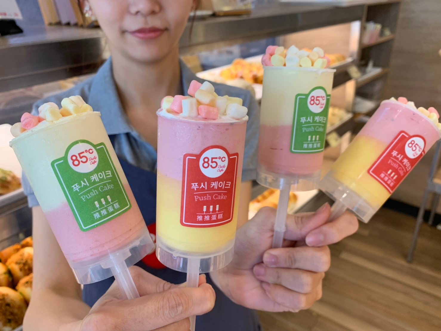 ▼不必出國,在台灣也可以吃得到!85ºC去年推出三款PUSH CAKE推推蛋糕,透明圓柱推筒,裝著色彩繽紛的蛋糕和餡料,一層一層堆疊,特別造型,加上亮麗外表,是不少網紅必推甜點;並且兼顧視覺與味覺雙重享受,即日起推陳出新兩款新品,不需要叉盤,就可以邊走邊優雅地吃甜點,輕巧易吃又不怕弄髒手。