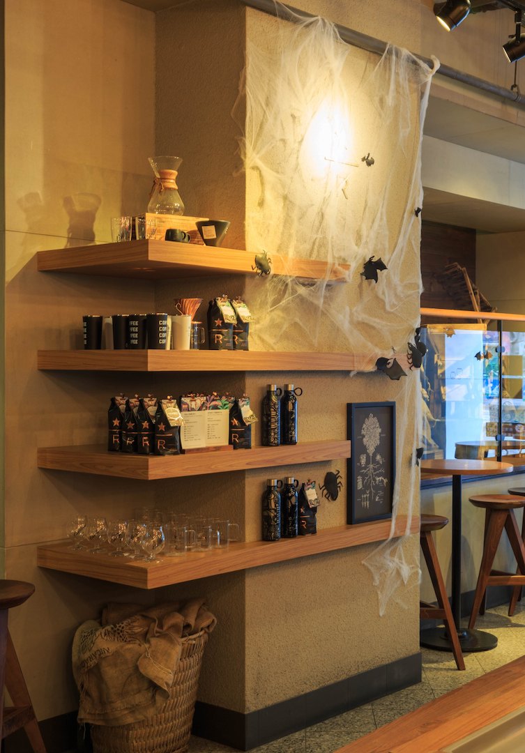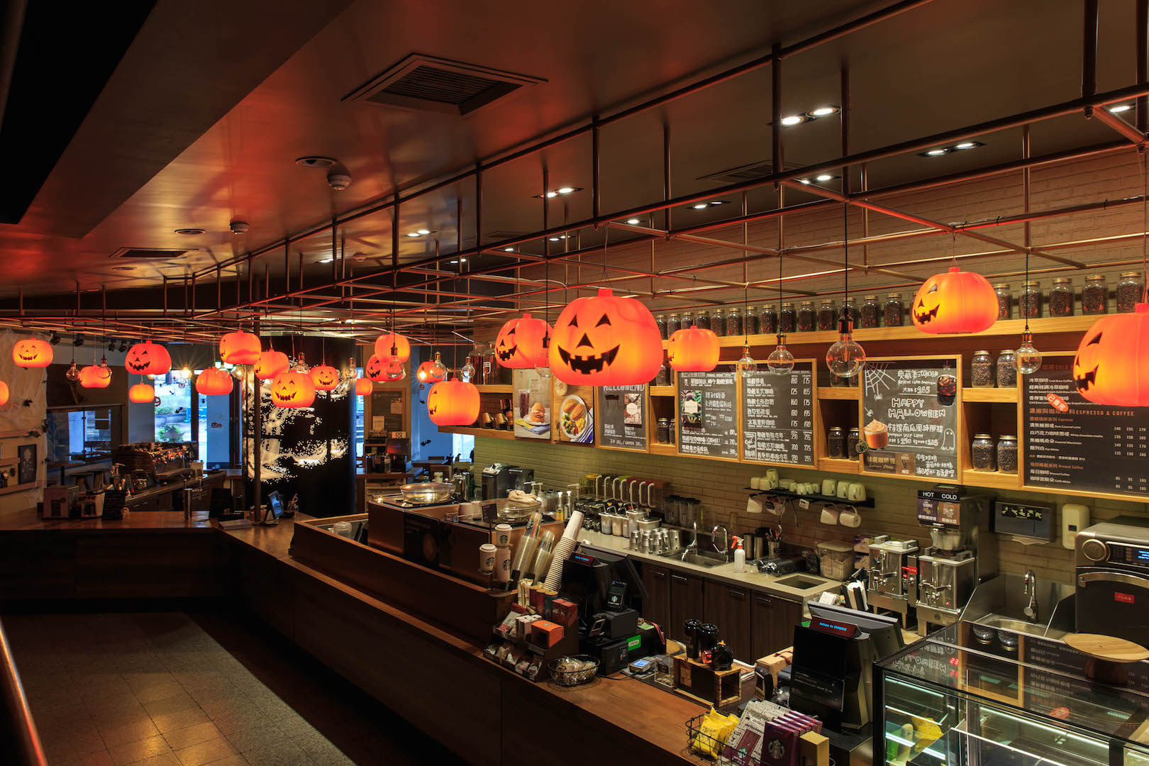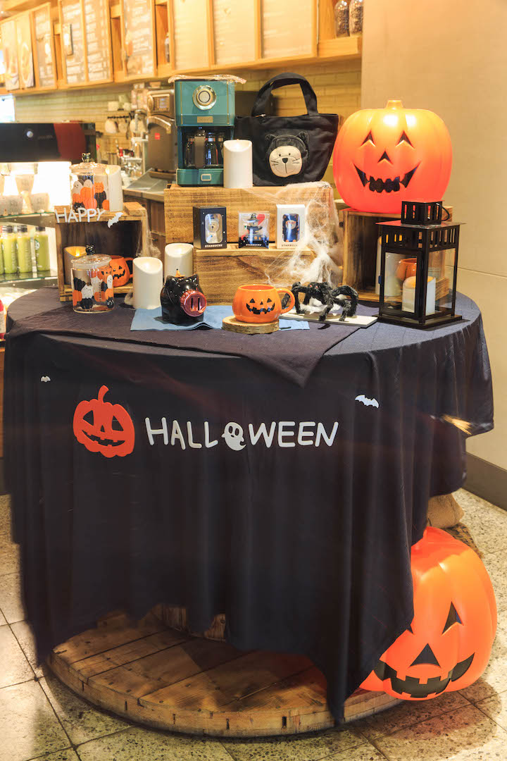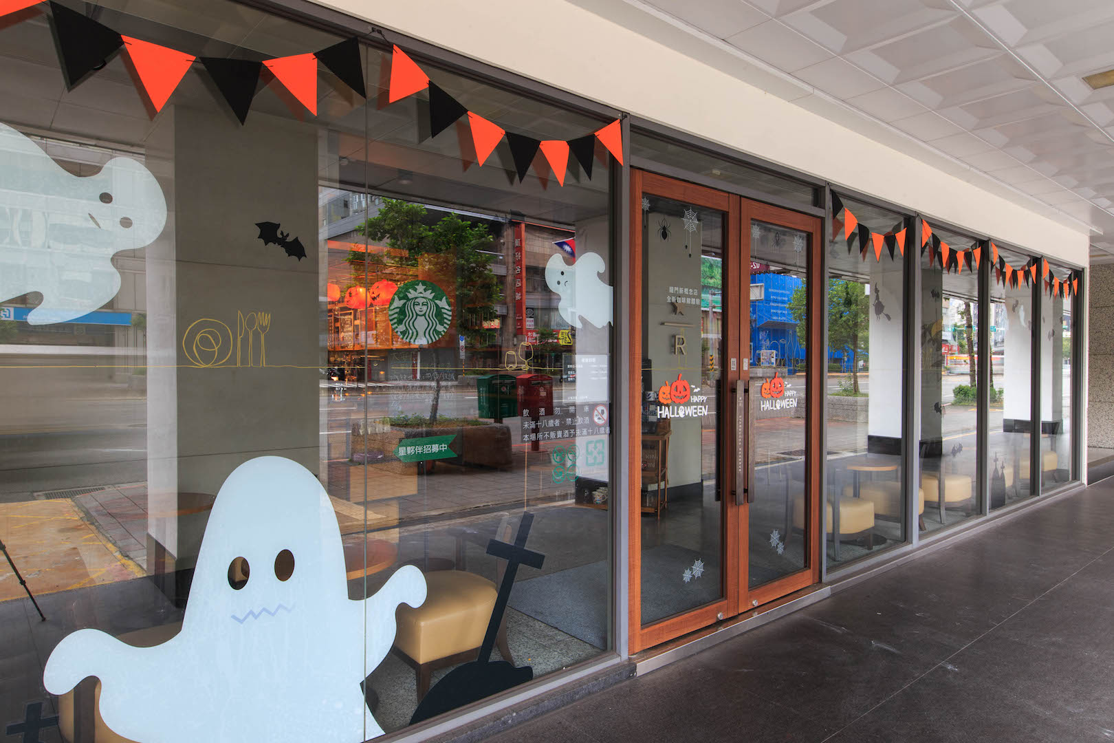 ▼而星巴克這次也特別選在「龍門門市」佈置萬聖主題,運用南瓜燈籠、蜘蛛巢穴、幽靈壁貼及周邊商品等營造出萬聖節氣氛,整間店到處都有驚喜。