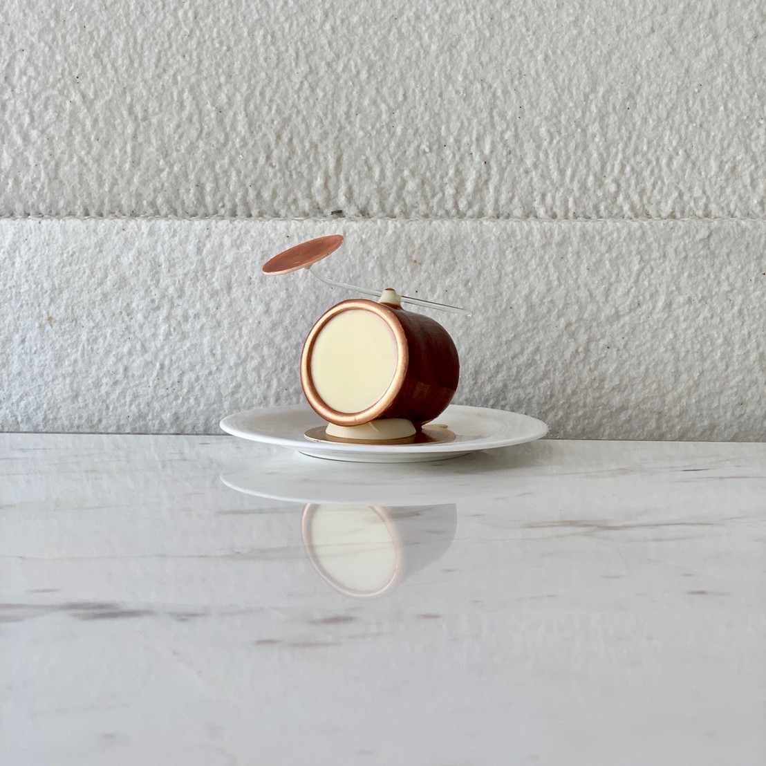 ▼節奏是爵士樂的靈魂-而爵士鼓則是支撐這靈魂的重要骨架;還原爵士鼓外型的「鼓動」,內餡以酸甜酸甜的熱帶水果,搭配香氣四溢的百香、鳳梨等金黃果肉,蛋糕體則採用韻味十足的焙茶蛋糕,清爽豐富的層次讓人欲罷不能。