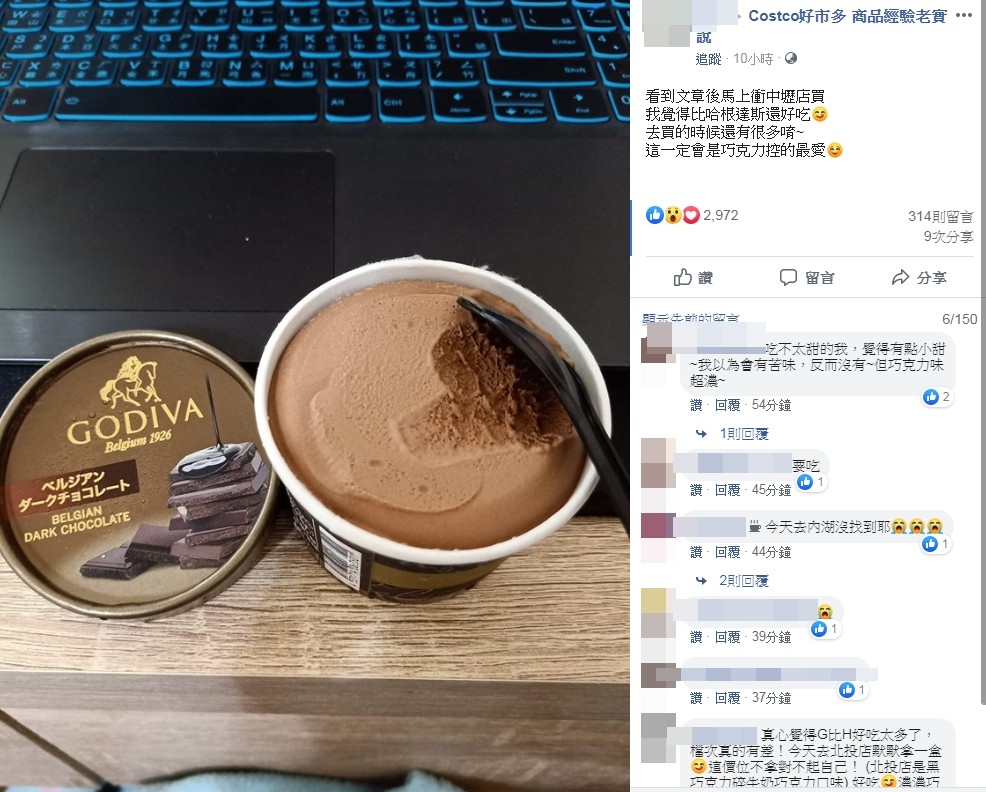 ▼有網友在「Costco好市多 商品經驗老實說」公開臉書社團上分享,並在貼文上表示「看到文章後,馬上衝中壢店買,我覺得比哈OO斯還超!去買的時候還有很多唷~這一定會是巧克力控的最愛。」