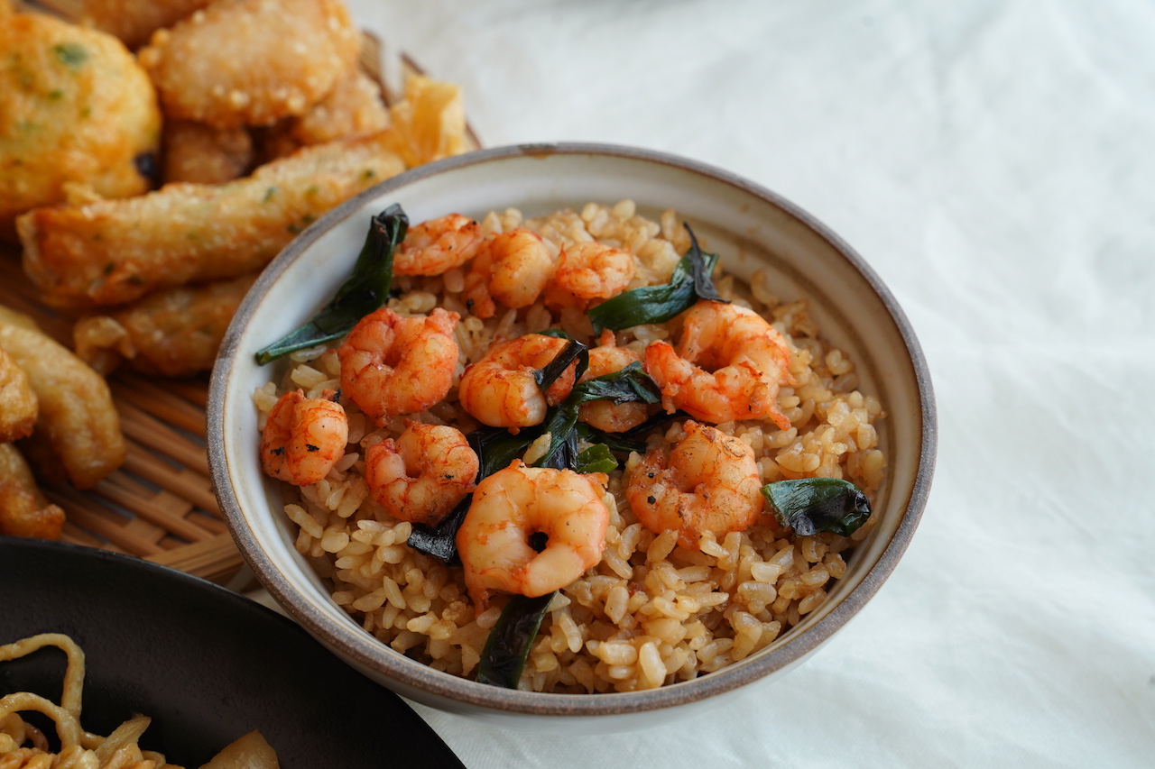 ▼集品蝦仁飯:紮實美味的蝦仁加入蔥段以大火快炒,搭配吸飽了鮮蝦甜美精華的褐色醬香味米飯,粒粒分明的飽滿口感跟爽脆蝦仁完全是絕配!