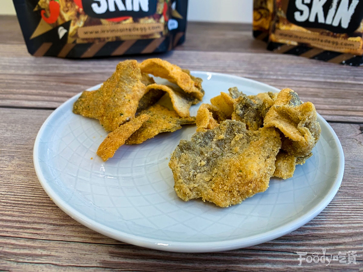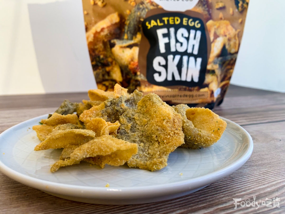 ▼魚皮吃起來沒有腥味,在外層鹹香蛋黃的襯托下引導出一絲絲鮮甜的海味,酥、脆、彈的口感讓人忍不住一口接一口,若再沾上獨家鹹蛋黃醬,鹹香甘達到完美的平衡,在嘴裡完美融合。