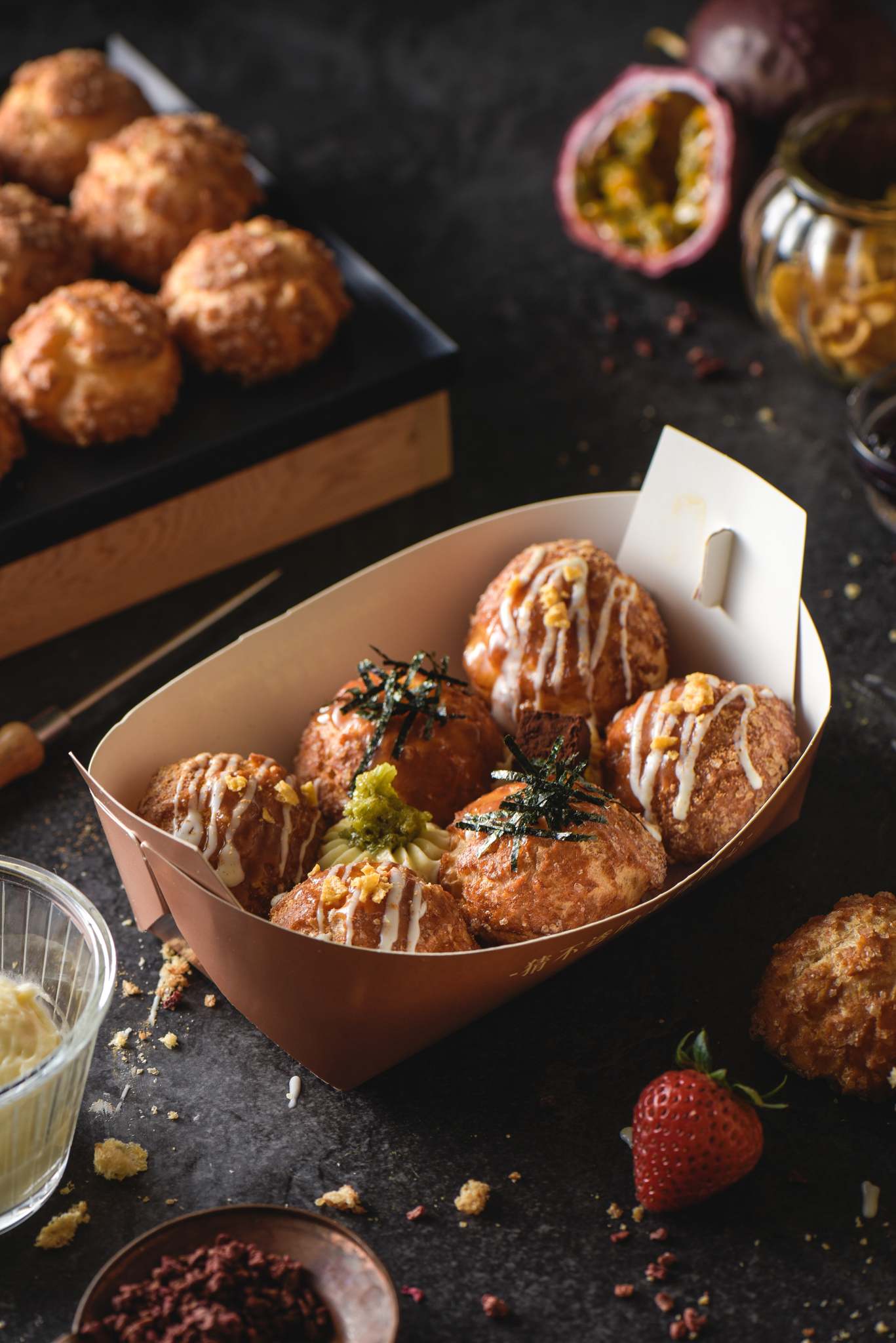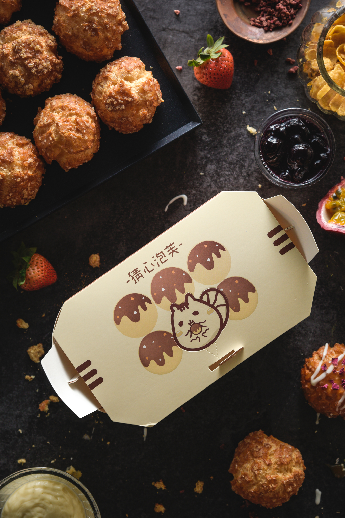 把泡芙做成像是章魚小丸子一樣,這麼特別的甜點只有猜心能想得出來了吧~快趁著快閃店還沒結束,一起到信義新光品嚐看看這來自高雄的好滋味吧!