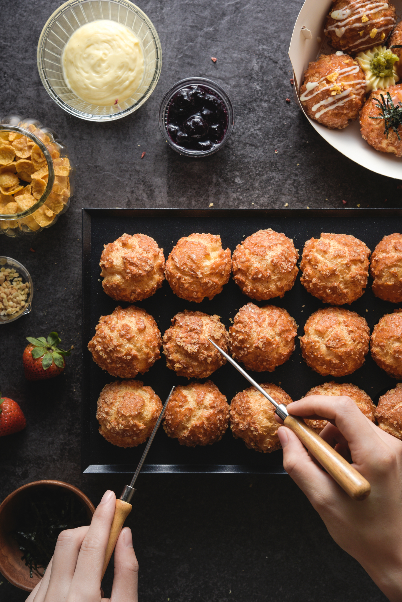 ▼猜心堅持每一顆泡芙一定要「現點現做」,讓客人可以品嘗到剛出爐熱騰騰的新鮮泡芙,每一天的口味都不一樣,想知道今天有什麼內餡一定要到猜心泡芙粉絲專頁看才知道!