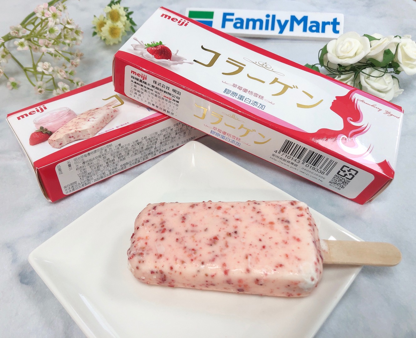 ▼此外,全家已將於10/23起開賣明治草莓優格膠原蛋白雪糕,吃冰也能同時愛漂亮,低卡低負擔的粉色系雪糕要擄獲女孩兒們的心。
