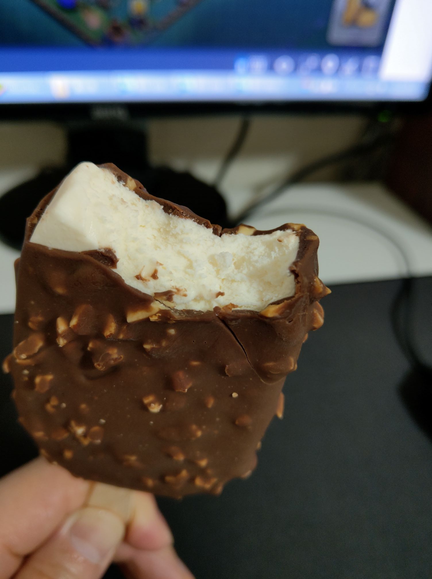 ▼原po大推這款雪糕「撫慰人心」,直說這款「脆皮巧克力雪糕厚又香,杏仁也蠻大塊,吃起來脆皮的口感和杏仁的香味十足」,開嗑後瞬間幸福到忘記自己沒買到GODIVA。