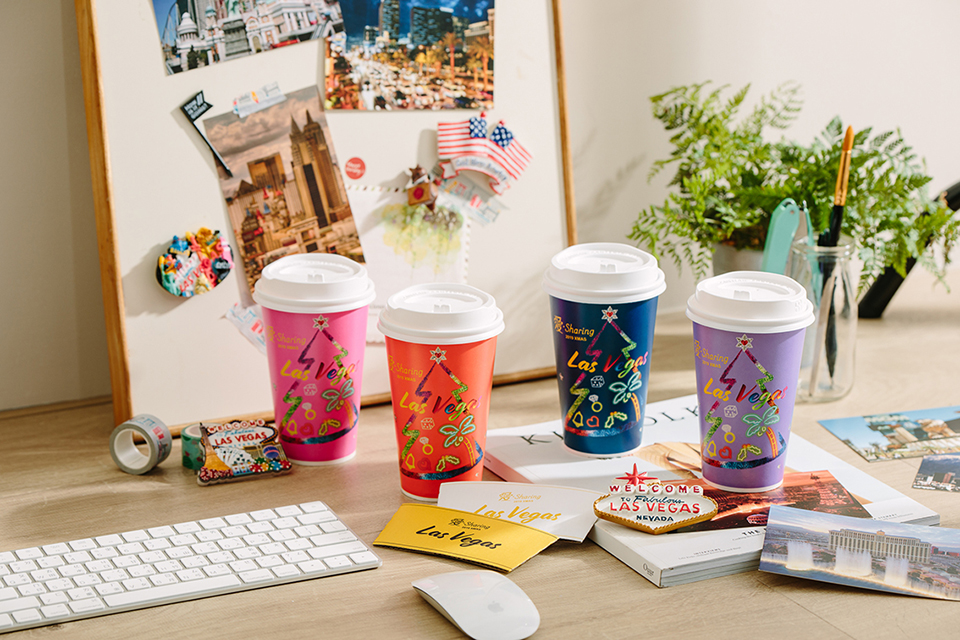▼為迎接聖誕節,7-ELEVEN將於10/24(四)起至11/12(二)推出第一波「愛‧SharingLas Vegas主題杯」,共有粉、橘、紫、藍色共四款,杯身呈現Las Vegas的霓虹絢麗氛圍,杯套則充滿Las Vegas的浪漫聖誕氛圍。