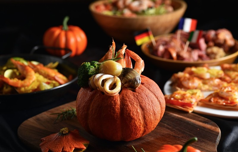 ▼除了活動精采之外,美食佳餚更是不能少!金色三麥在萬聖節期間推出超應景的「干貝海鮮燉飯南瓜盅」,說到萬聖節第一個想到的就是南瓜啦,有了這道料理在桌上,隨手拍都能拍出萬聖節氛圍!
