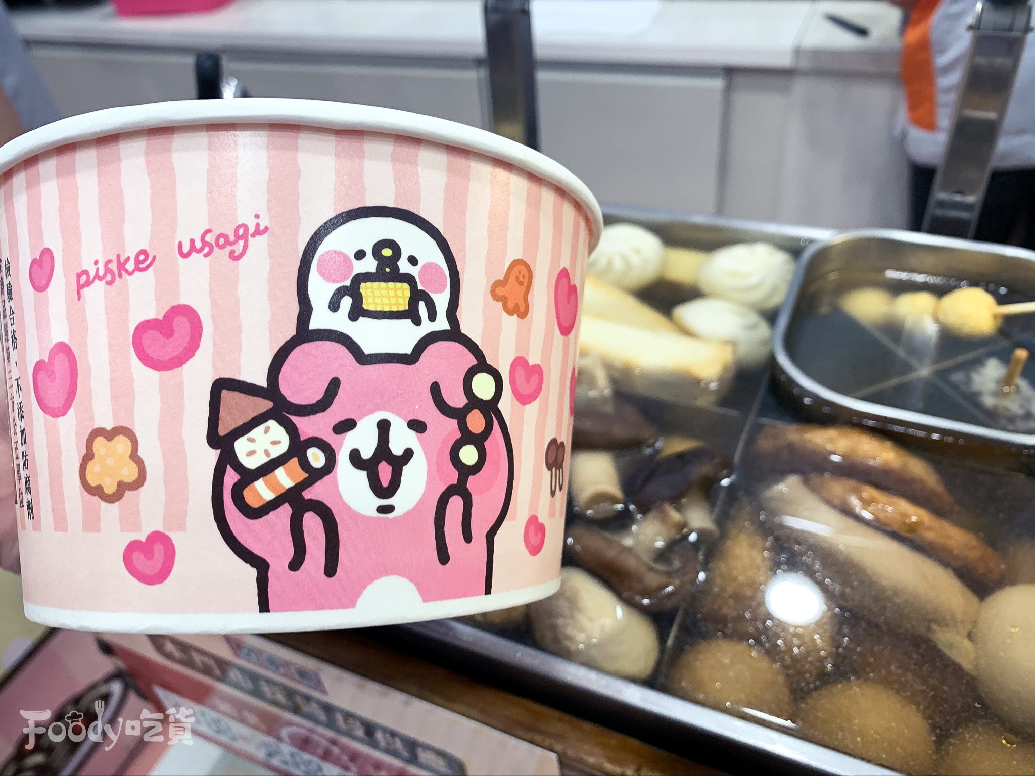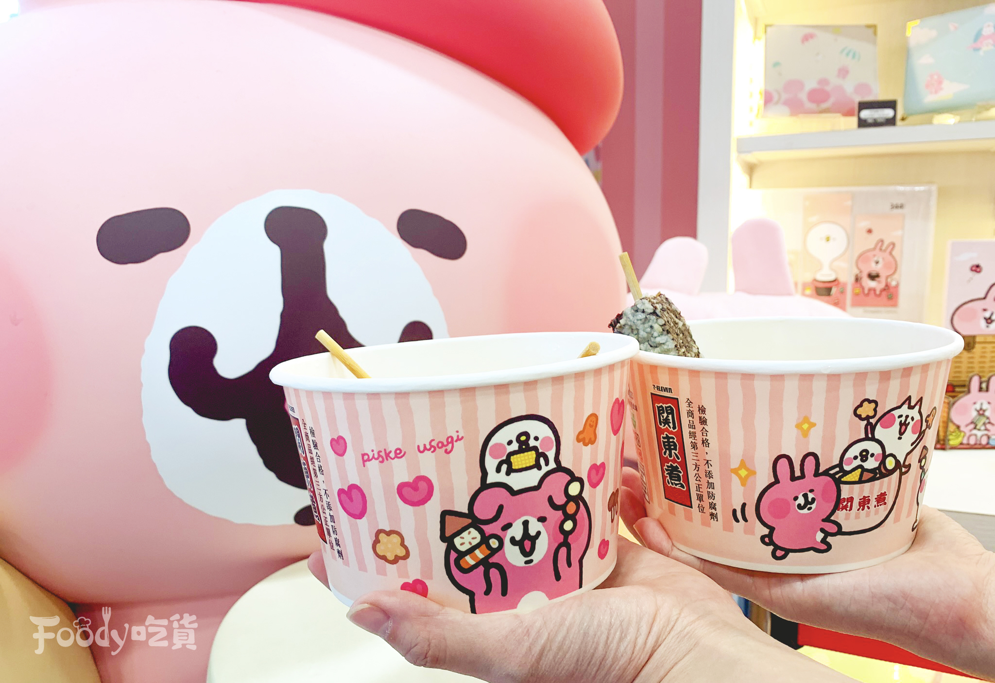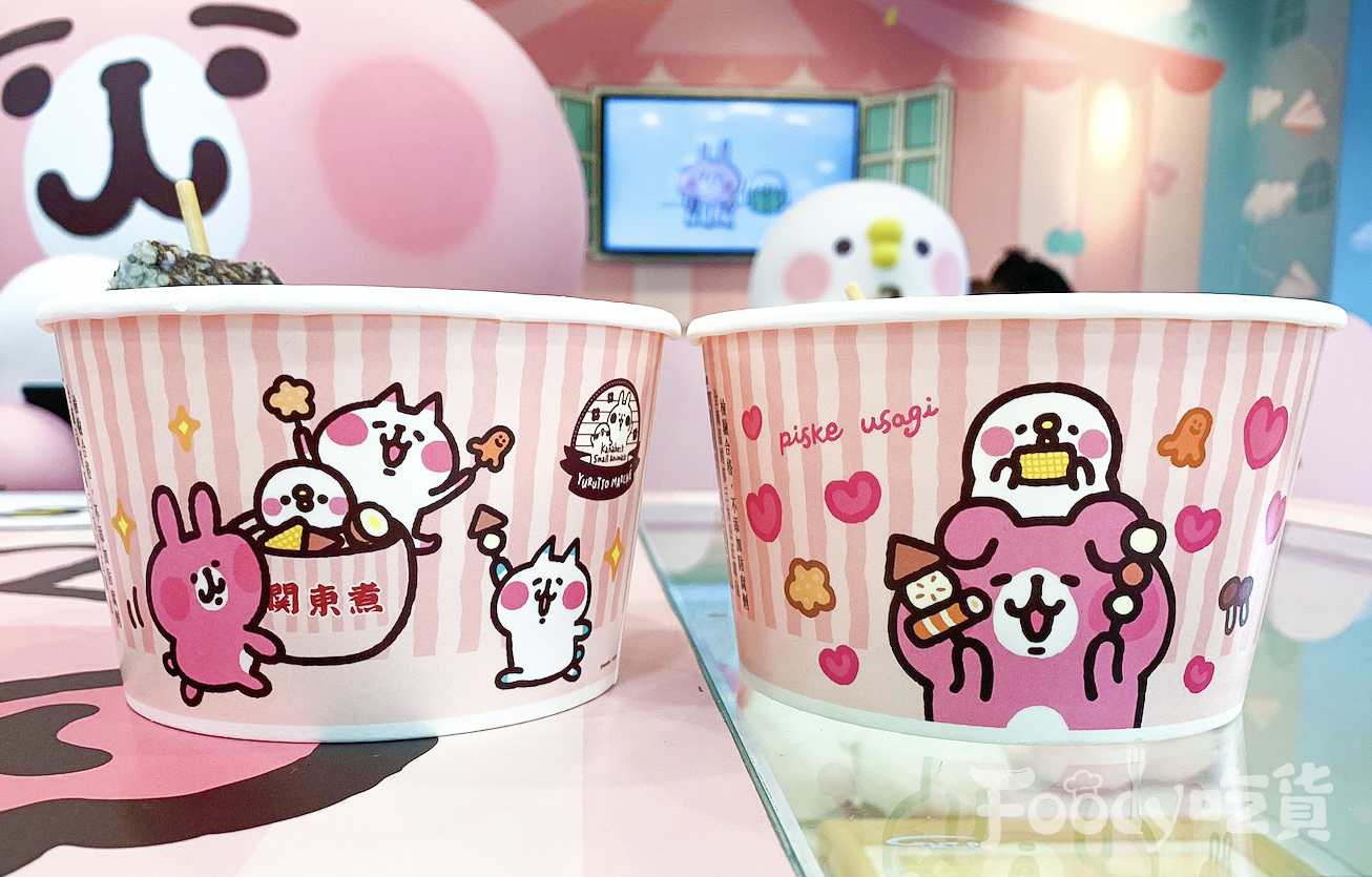 ▼其實這是台北「威克門市」限定的卡娜赫拉關東煮碗,威克門市本身就是卡娜赫拉聯名店,所以有兔兔&P助化身關東煮紙碗也是合情合理的啦~