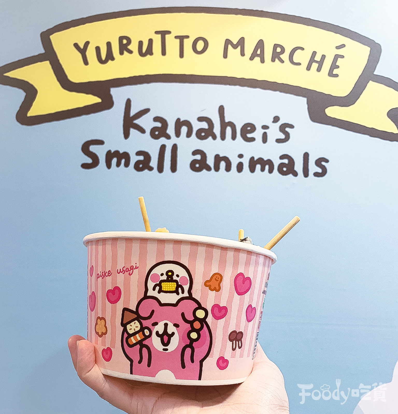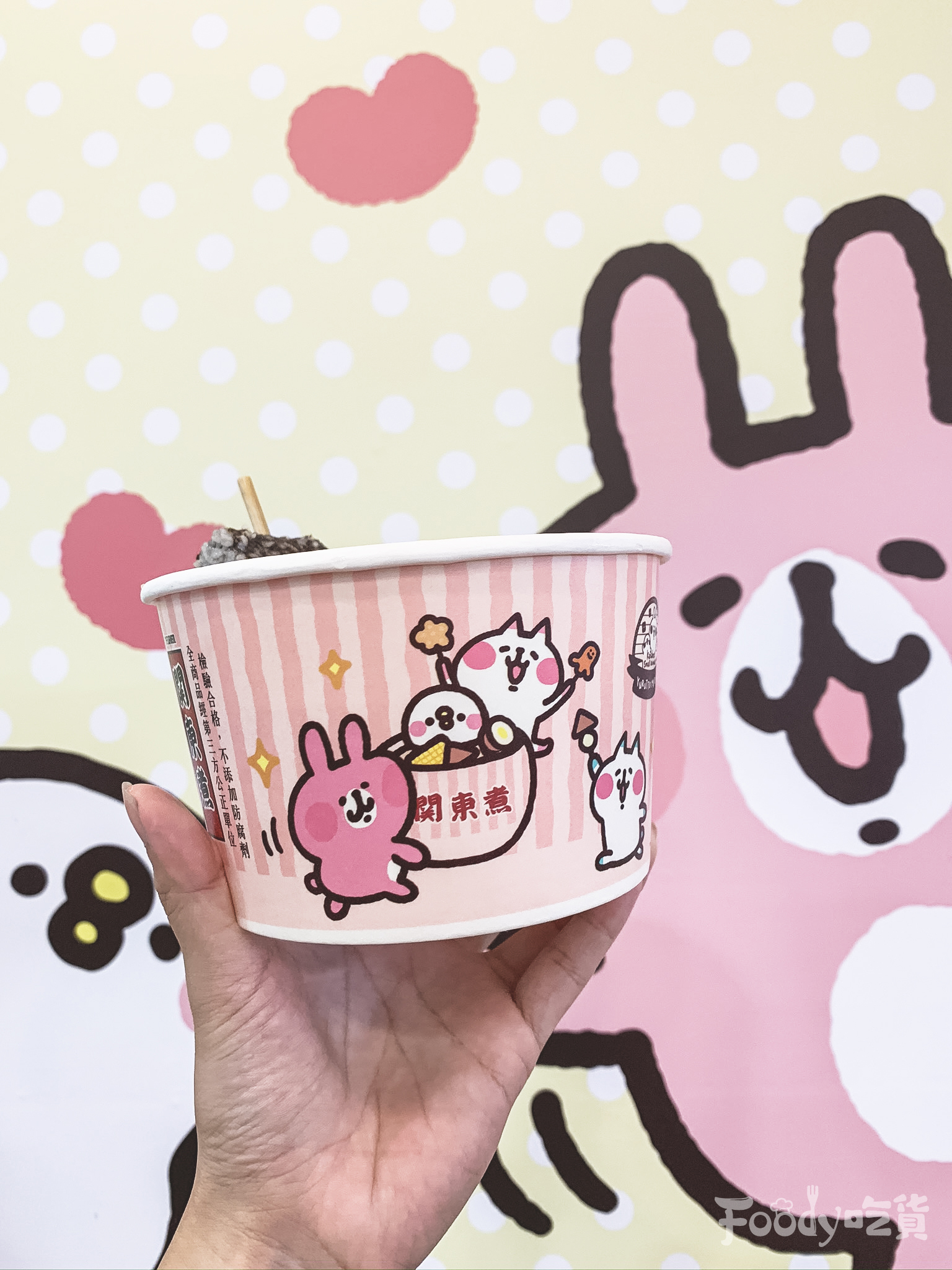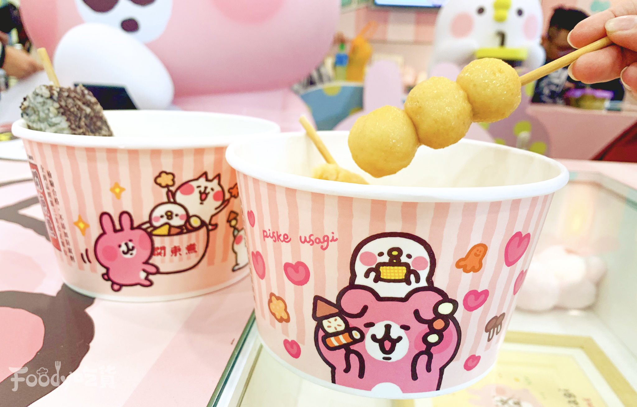 ▼其實這是台北「威克門市」限定的卡娜赫拉關東煮碗,威克門市本身就是卡娜赫拉聯名店,所以有兔兔&P助化身關東煮紙碗也是合情合理的啦~
