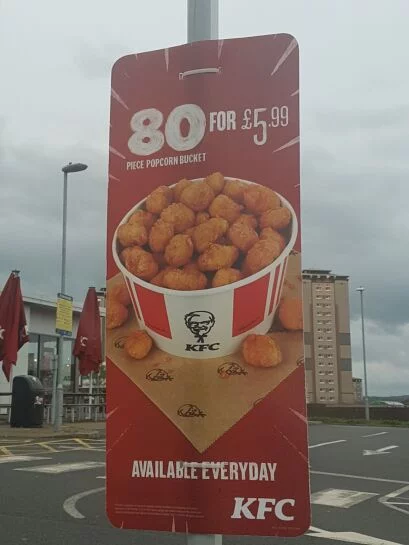 ▼以英國肯德基的定價來看,平常一個雞米花盒的售價就已經是 3.99英鎊(約新台幣157元),而且數量絕對不會有80個之多,如今推出這項優惠實在是太佛心了!