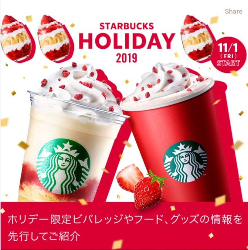 大家準備聖誕節前夕去日本旅行的話,一定要到星巴克試試今年的限定飲品,濃濃的草莓味不能錯過喔~