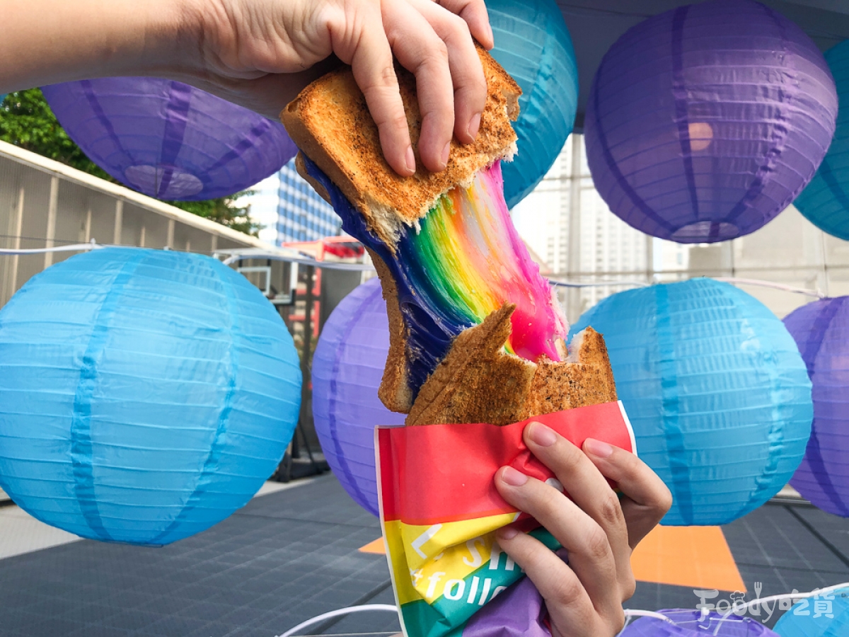 ▼日本原宿竹下通是年輕人必逛街道,必吃的排隊美食「彩虹起司吐司」這次也來台了!烤得熱熱的吐司可以拉出超~長的彩虹色起司,美味又能曬照,此外還有彩虹起司熱狗、彩虹汽泡飲可以喝!