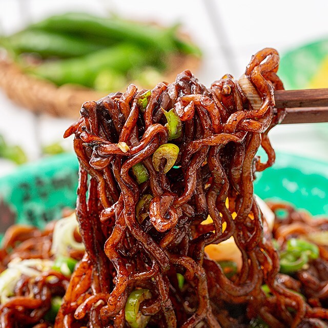 ▼實際泡出來的麵黑呼呼的,光看就非常夠味!再撒上青陽辣椒點綴後,更是食指大動啊~