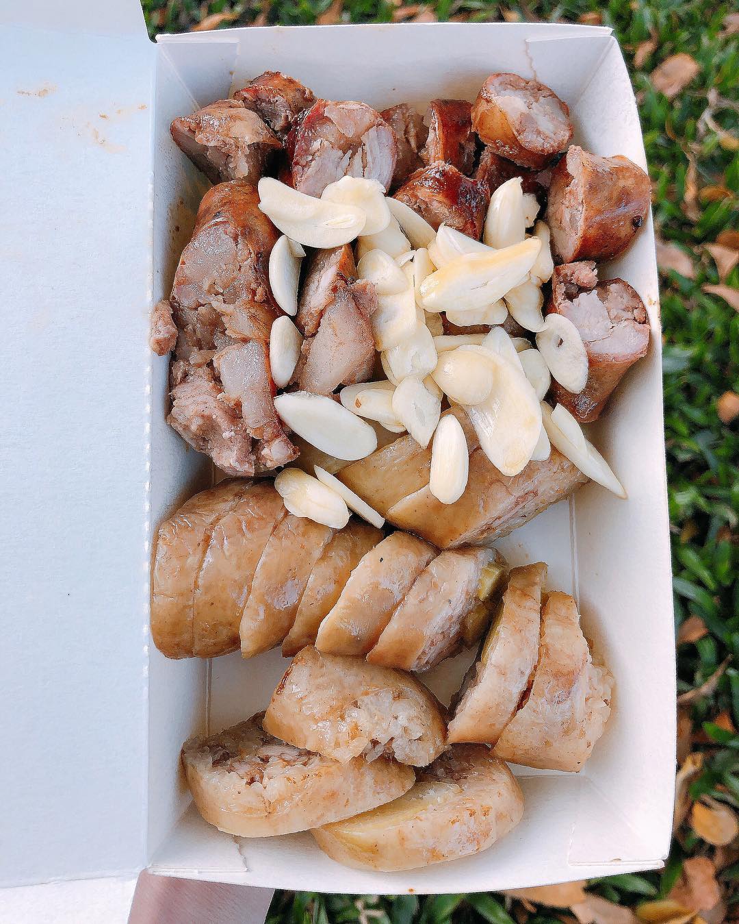 ▼一般香腸熟肉最主力的商品就是香腸跟「大腸」:大腸就是糯米腸中包熟肉,紮實的熟肉讓黏軟糯米充滿肉香,黑人魯熟肉的大腸還會加入皇帝豆,讓整體口感更有層次,在地老饕激推,不早點去可是搶不到!