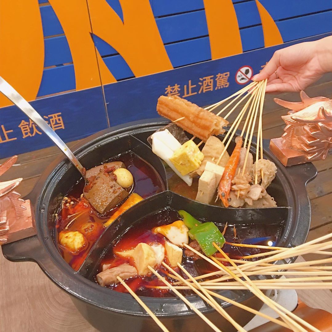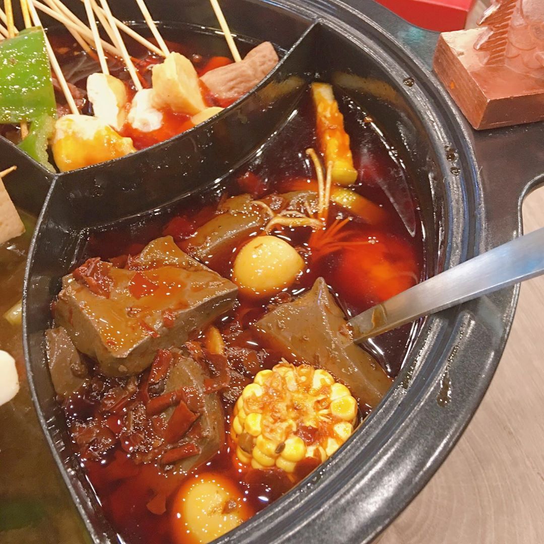 ▼這家的鍋底味道重口,不適合直接裝來喝,但是放上串物下去煮,吸飽湯汁的食材一口吃下去超級滿足!