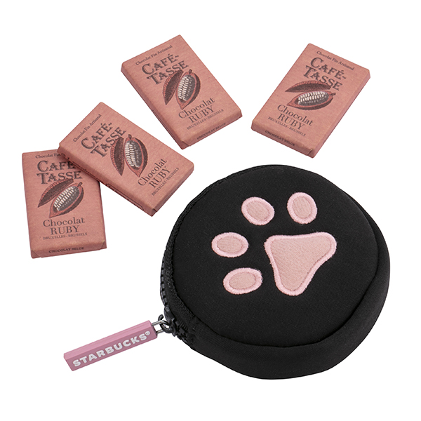 ▼注目的包裝食品部分,今年首度推出粉紅色系的紅寶石巧克力,搭配粉紅色貓掌零錢包,更有夢幻氛圍,絕對是少女們今年耶誕必收的小物之一。