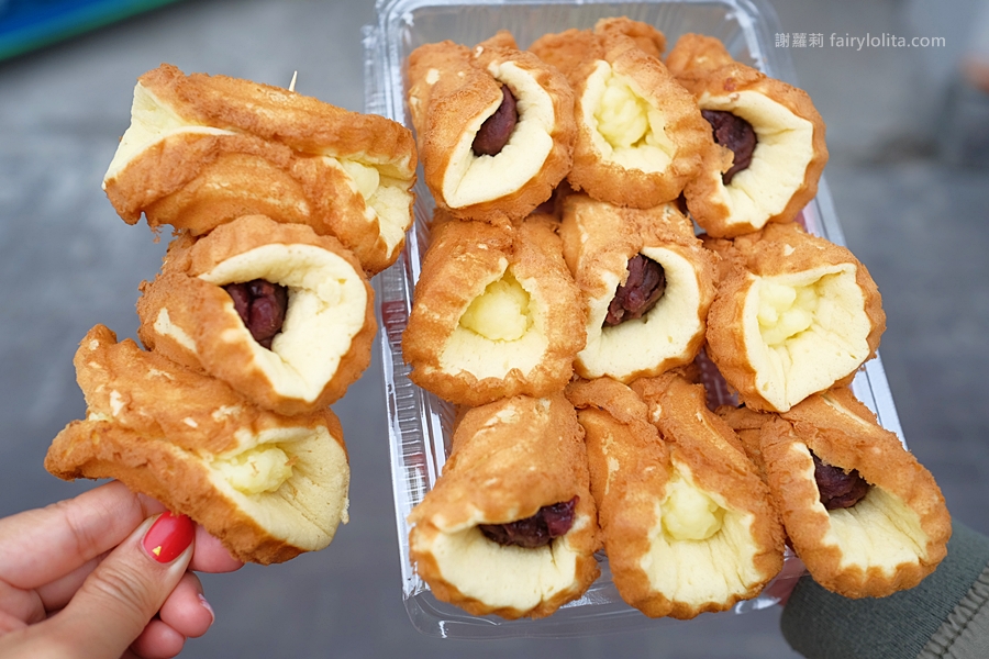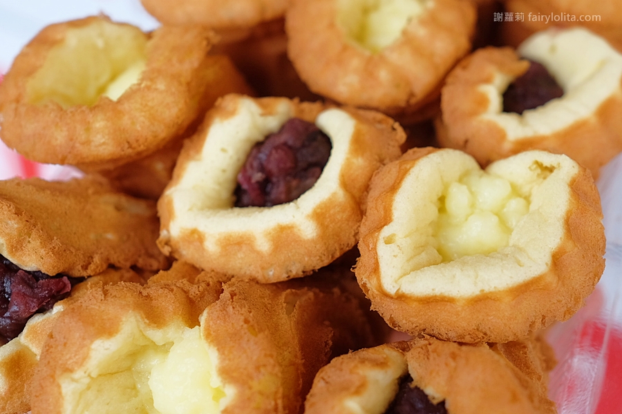▼招牌「奶油蛋糕」、「紅豆蛋糕」每個12元,有別於一般的雞蛋糕把餡料完全封在蛋糕裡,城門雞蛋糕是以類似蛋糕捲的形式,讓餡料半露出來,不但什麼口味一目瞭然,視覺效果也是一流。