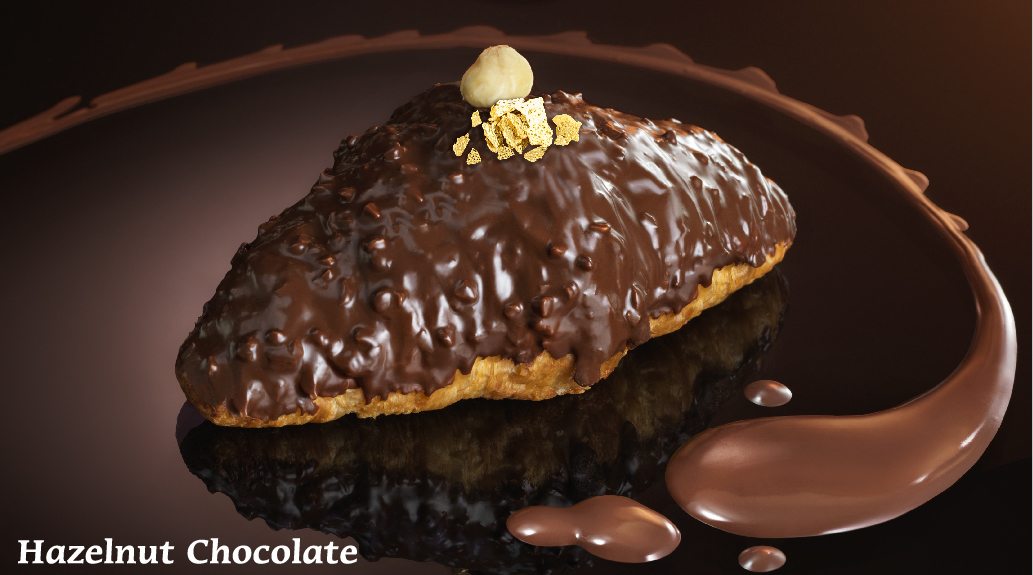 ▼嚴選比利時頂級巧克力鋪滿可頌外層,上頭點綴著一整顆新鮮榛果,豪華感十足,一口咬下榛果的香氣搭配法國直送榛果醬與巧克力的苦甜,口味堆疊,開啟唇間奢華享受,帶來視覺味覺上一大饗宴。