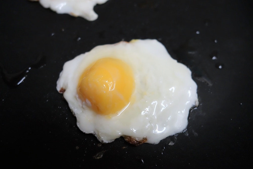 ▼如果火候控制得比較好的話,最後就能做出這種蛋白覆蓋的漂亮半熟煎蛋啦~