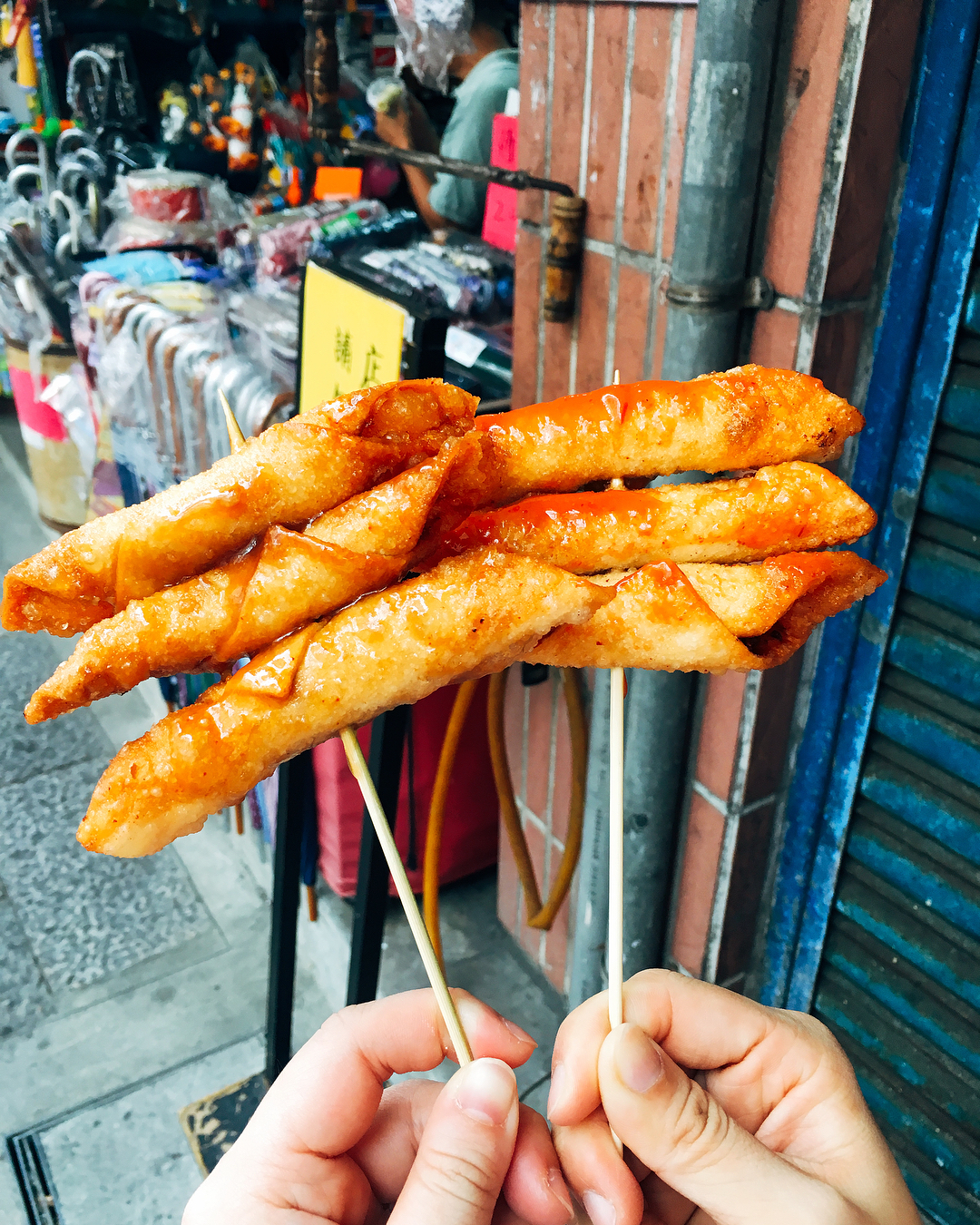 看它這樣酥酥脆脆的、經濟實惠又讓人欲罷不能的美味,真的很適合逛老街的時候來上一支邊走邊吃耶~