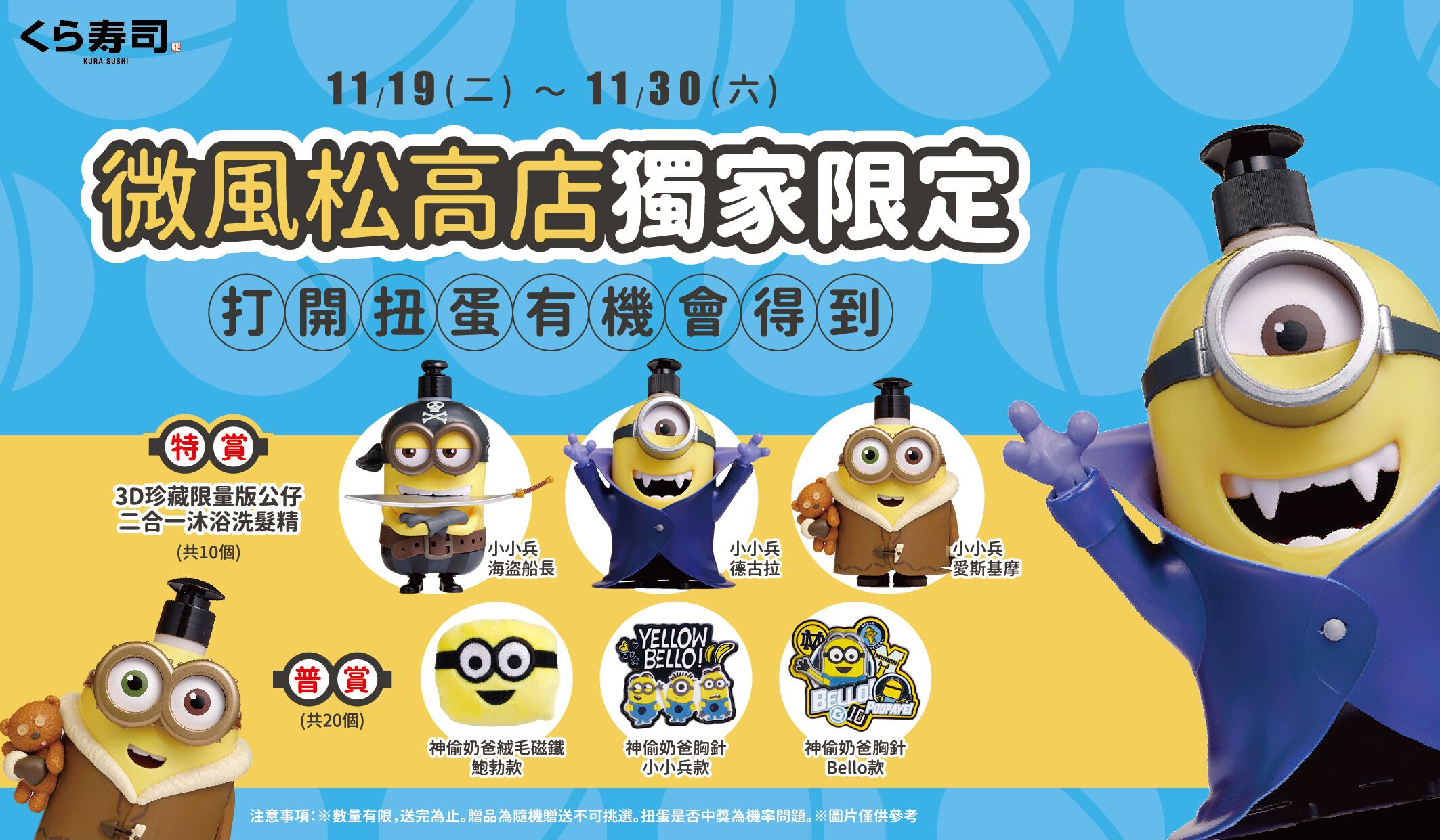 【台北】黃色兵團又來惹~「藏壽司x小小兵」再加碼 新店舖限定「3D珍藏版公仔」限量開抽
