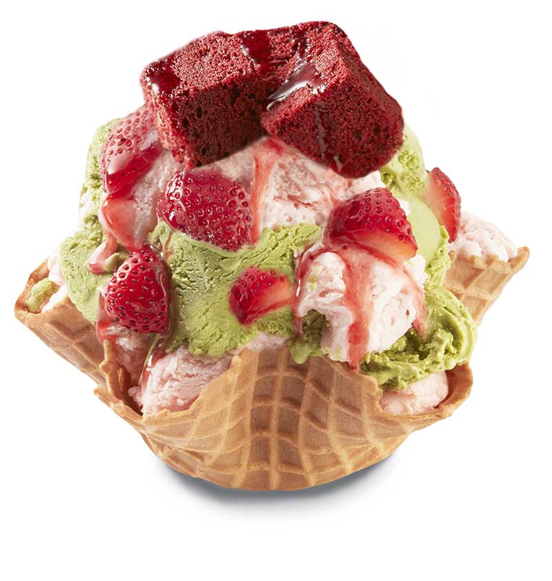 ▼而「聖誕紅寶石」特別以聖誕樹為創意發想,以粉紅色視覺代表超人氣草莓冰淇淋,拌入綠色視覺代表抹茶冰淇淋,呈現節令的漸層色澤,拌入如紅寶石般的法國草莓,放上紅絲絨海綿蛋糕,淋上新鮮熬煮的草莓醬,充滿巧思的新品將霸佔您的視覺與味蕾,顛覆冬季冰品想像,必引起新一波話題討論。