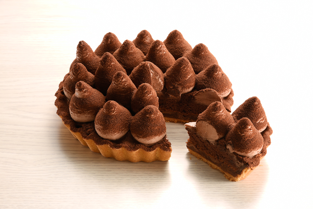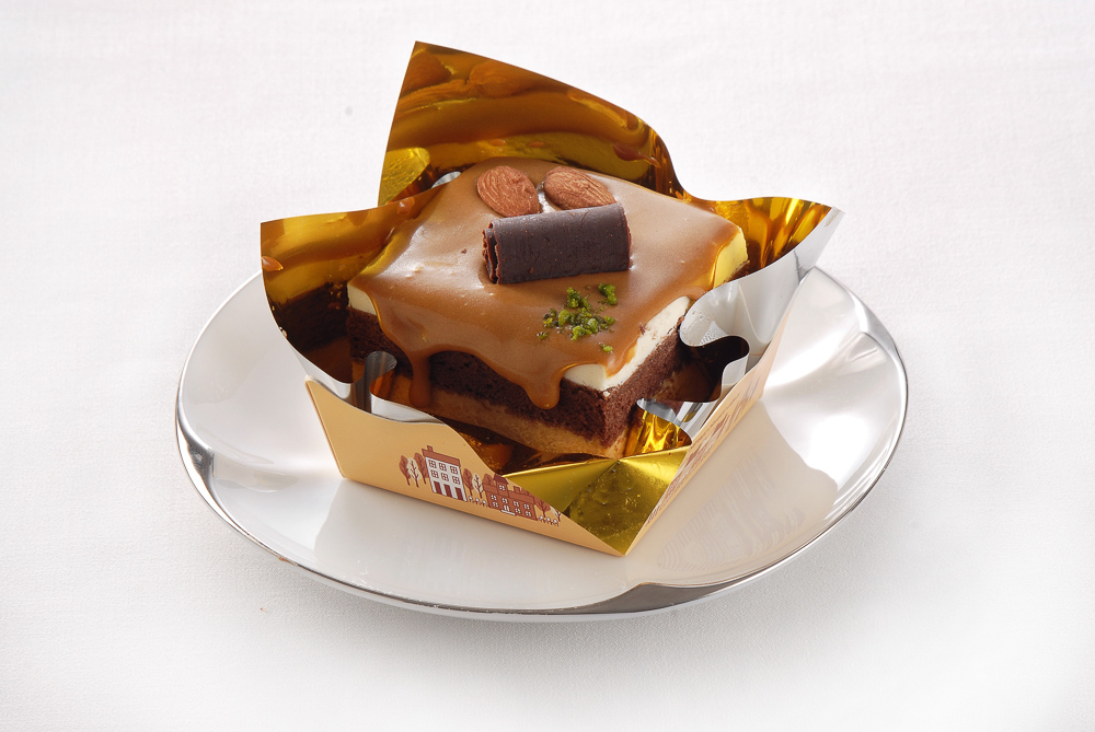 ▼「沙哈慕斯」售價$720 (6吋)、$980 (8吋),將比利時苦甜巧克力慕斯、巧克力蛋糕與可可粉完美搭配,苦甜的滋味以多樣形式展現出深層風味,夾層裡的焦糖南瓜子畫龍點睛,值得巧克力控細細品嚐。