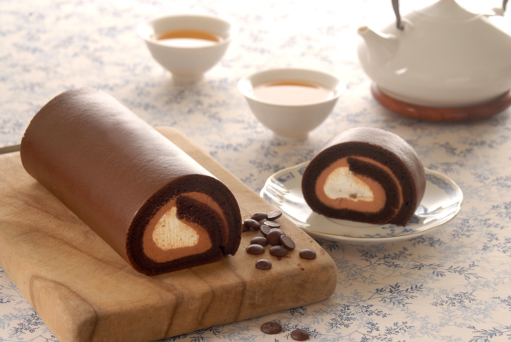 ▼「黑魔粒生乳捲」售價$420,結合脆粒分明的巧克力豆,為Q彈可口的蛋糕體增加了饒富趣味的口感,奶霜裡蘊藏著醇厚的巧克力香氣與質感,在舌尖裡瞬間融化成令人驚豔的滋味,創造殿堂級的層次風味,可謂濃郁經典之作。