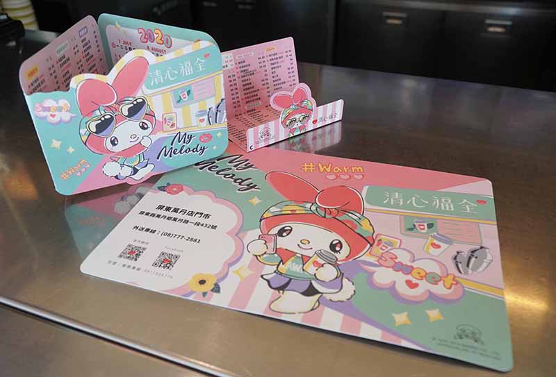 ▼配合「My Melody X 清心福全 綺萌時代」活動開跑,清心福全特地準備了精美的「美樂蒂菜單DM」、「美樂蒂菜單名片」、「美樂蒂菜單年曆小卡」,供消費者免費索取,各門市的數量有限,送完為止。其中「美樂蒂菜單年曆小卡」結合了清心福全菜單與2020年曆,有特別的裁形,摺疊之後可以站立,讓美樂蒂陪你度過整個2020年。