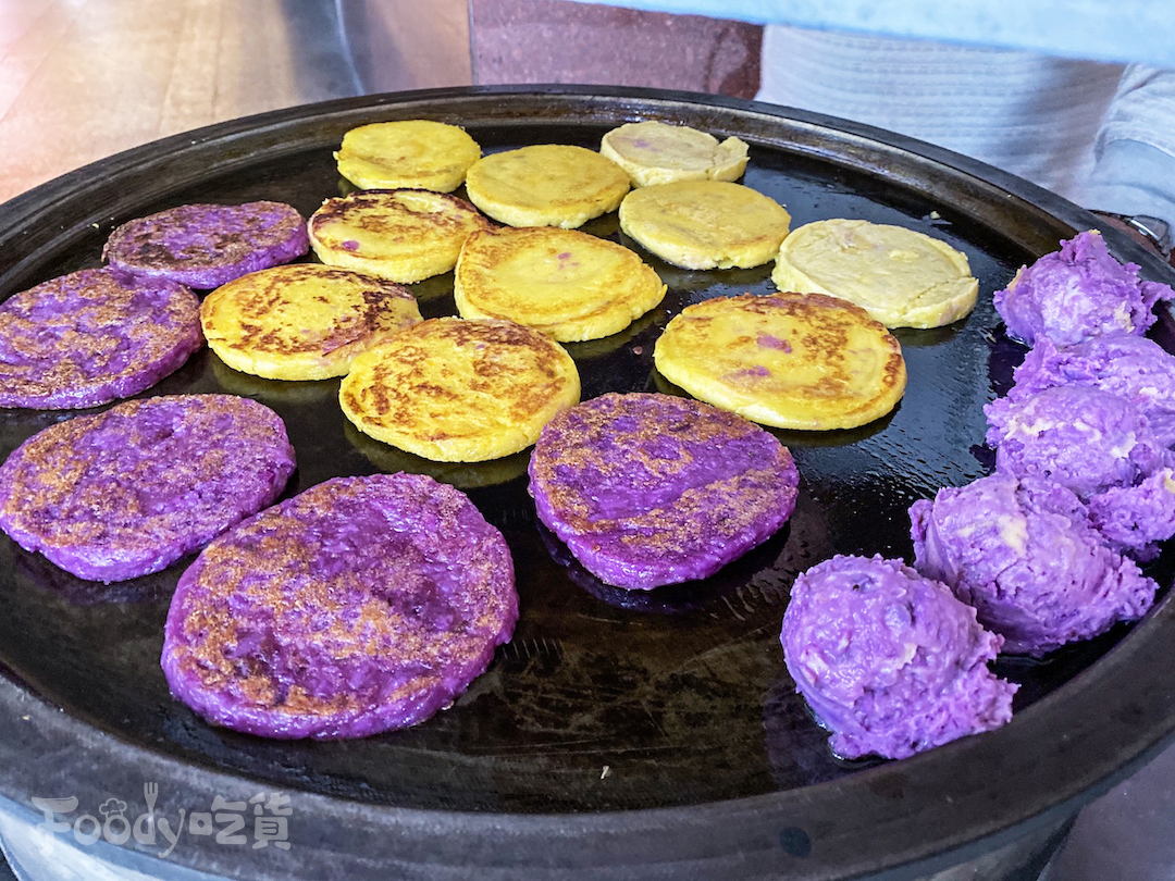 ▼煎好的地瓜餅跟山藥薯餅,外層有著完美的煎痕,裡面卻不會太乾燥,而是綿密鬆軟中還帶有適當水份,真的是古早味點心中的霸主~