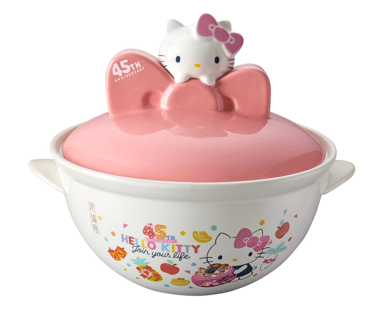 ▼鍋身也可以看到繽紛的Hello Kitty正在慶祝45週年,重點是她手上也拿著一盅佛跳牆,也太搞笑了吧!