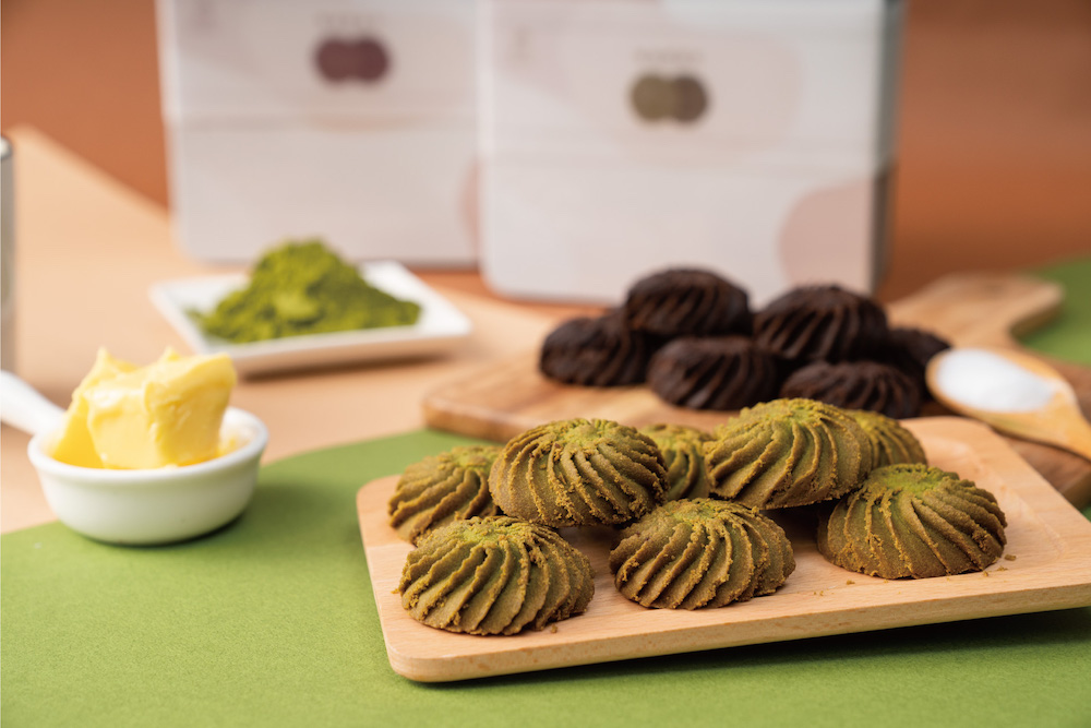 ▼「靜岡抹茶轉圈圈曲奇」嚴選日本靜岡佐藤園抹茶粉、日本頂級麵粉和比利時無鹽奶油,以中火慢烤烤出最酥鬆的口感!