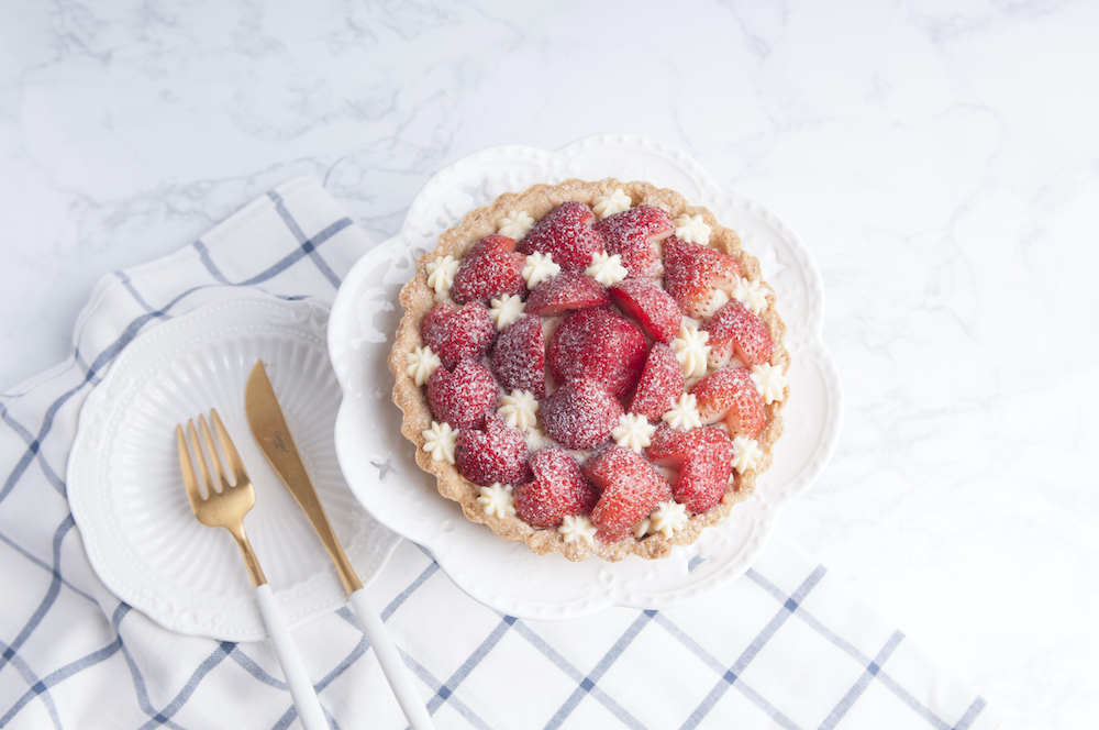 ▼許多朋友擔心沒有烘焙經驗,而做不出好吃的甜點,新手們可以嘗試「莓你不行草莓塔」,剛出爐的酥香塔皮,擠上甜而不膩的法式布丁餡,再將一顆一顆碩大艷紅的草莓疊進餡裡,莓果特有清新香氣隱隱帶著酸甜,巧妙的妝點讓素雅的草莓塔變身嬌嫩系女孩。