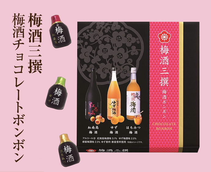 ▼「HAMADA 梅酒三撰酒心巧克力」原價250元,買兩件8折,日本期間限定商品,梅酒三撰酒心巧克力使用「紅南高梅酒」,「紀州柚子梅酒」,「紀州蜂蜜梅酒」3種類的梅酒,酸酸甜甜的梅酒結合上巧克力猶如初戀滋味一般!