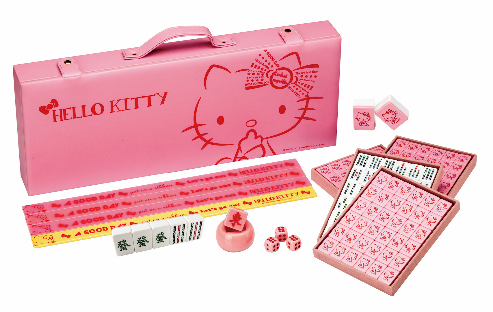 ▼Hello kitty典藏時尚麻將組:整盒麻將都粉嫩嫩實在太cute!誰說麻將跟少女心扯不上邊的?Hello Kitty要你搓麻將也能萌萌噠~