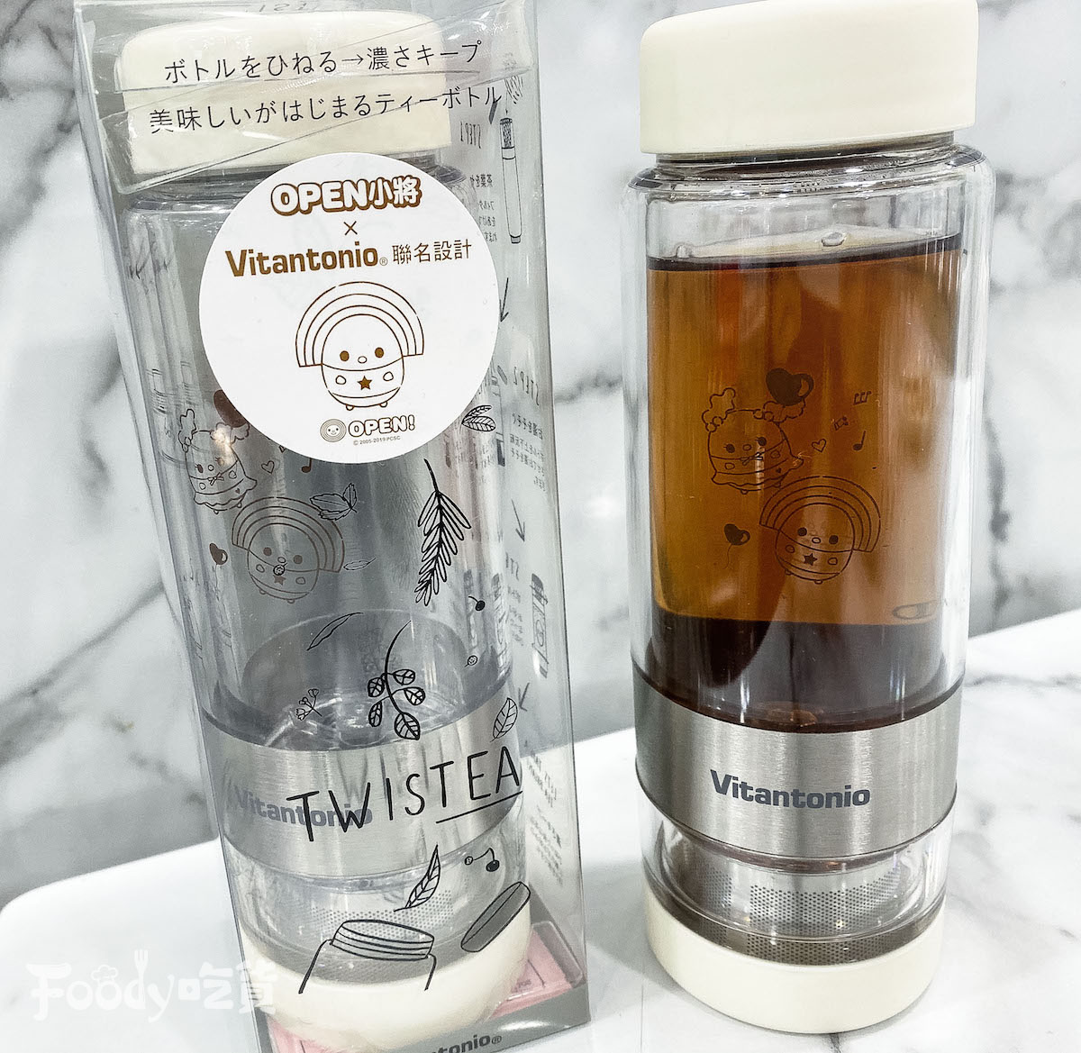 ▼OPEN! X Vitantonio泡茶瓶:日本熱銷商品,雙層杯身設計,杯身上有可愛的OPEN小將,耐熱溫度-20~100℃,熱飲不燙手;冷飲不滴水珠,獨特雙頭旋鈕設計,泡茶濃度自己決定。