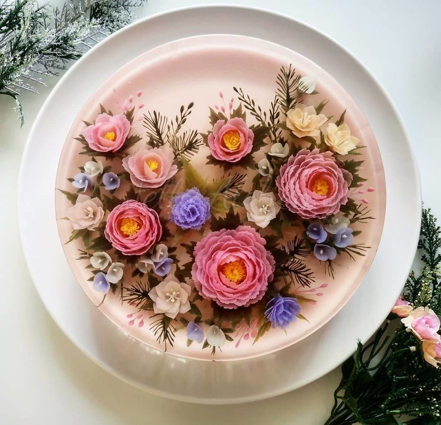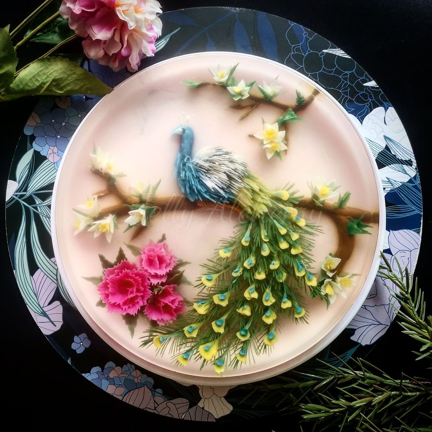 ▼晶瑩剔透的果凍蛋糕以花鳥為主題,顏色鮮豔、栩栩如生,就像藝術品一樣。而且還有多種口味,好看又好吃。