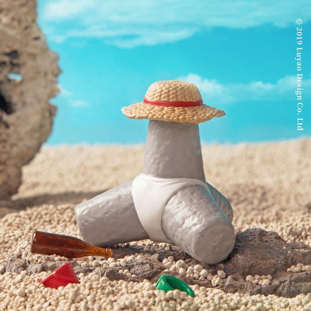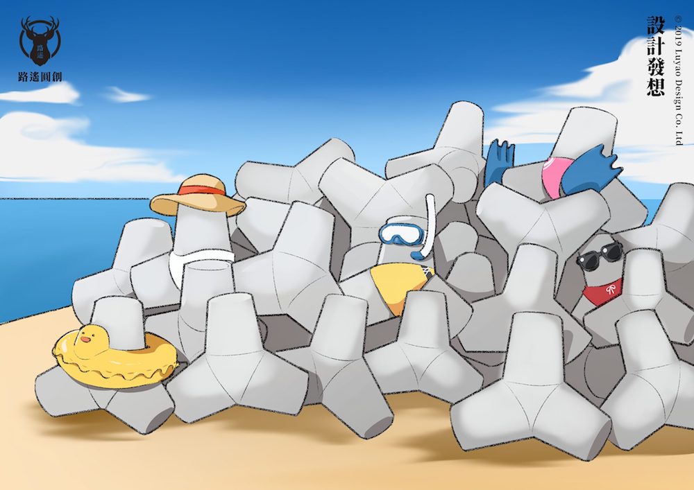 ▼消波塊們在海邊度假,穿著泳褲戴草帽、墨鏡的樣子超療癒,就像真的有「注入靈魂」般「栩栩如生」(?)。