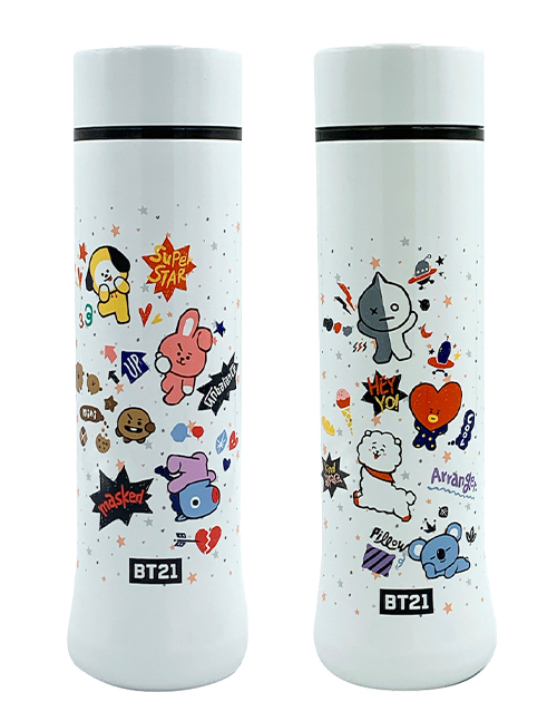 ▼BT21保溫杯:共2款,宇宙明星們齊聚一堂,在杯身上各自擺出各種可愛又療癒的模樣;使用不銹鋼的雙層構造,保冰保溫功能強,夏天及冬天皆適用;杯口內十字型冰檔,不論冰塊及茶包,可防止飲用時滑落。2000點+779元可換一款。